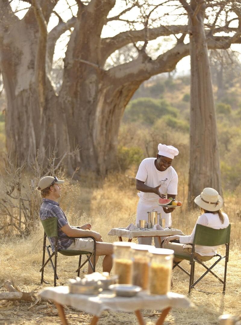 You can then curl up with a cup of coffee or tea on your private elevated wood deck that surrounds the entire banda or in the relaxing sitting area, both of which provide breathtaking views of the Ruaha’s wilderness reserve.