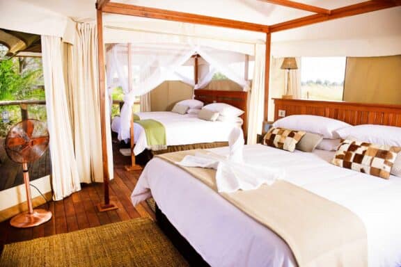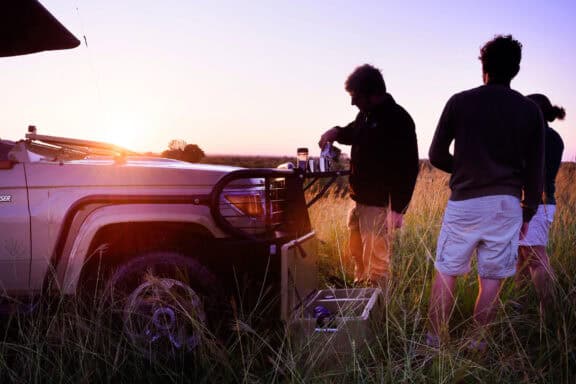 Here you will enjoy a sumptuous continental breakfast around a fire where fresh toast is prepared on the coals and a pot of porridge bubbles away. Shortly afterwards you will set off on your game drive or walking safari (available May to November).