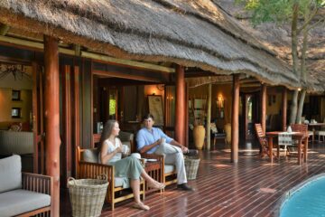 The sparkling swimming pool at the main lodge area promises a refreshing dip while providing the opportunity to enjoy the rich and varied wildlife that comes to the Imbali water hole for a cooling drink.