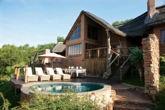 Impodimo Game Lodge is set on a rocky ridge overlooking the vistas within the magnificent malaria-free Madikwe Game Reserve of the North West Province of South Africa.