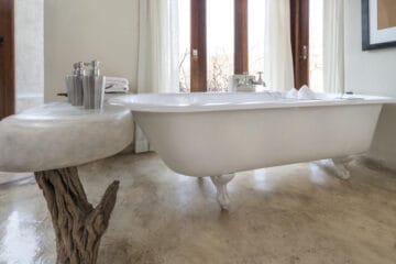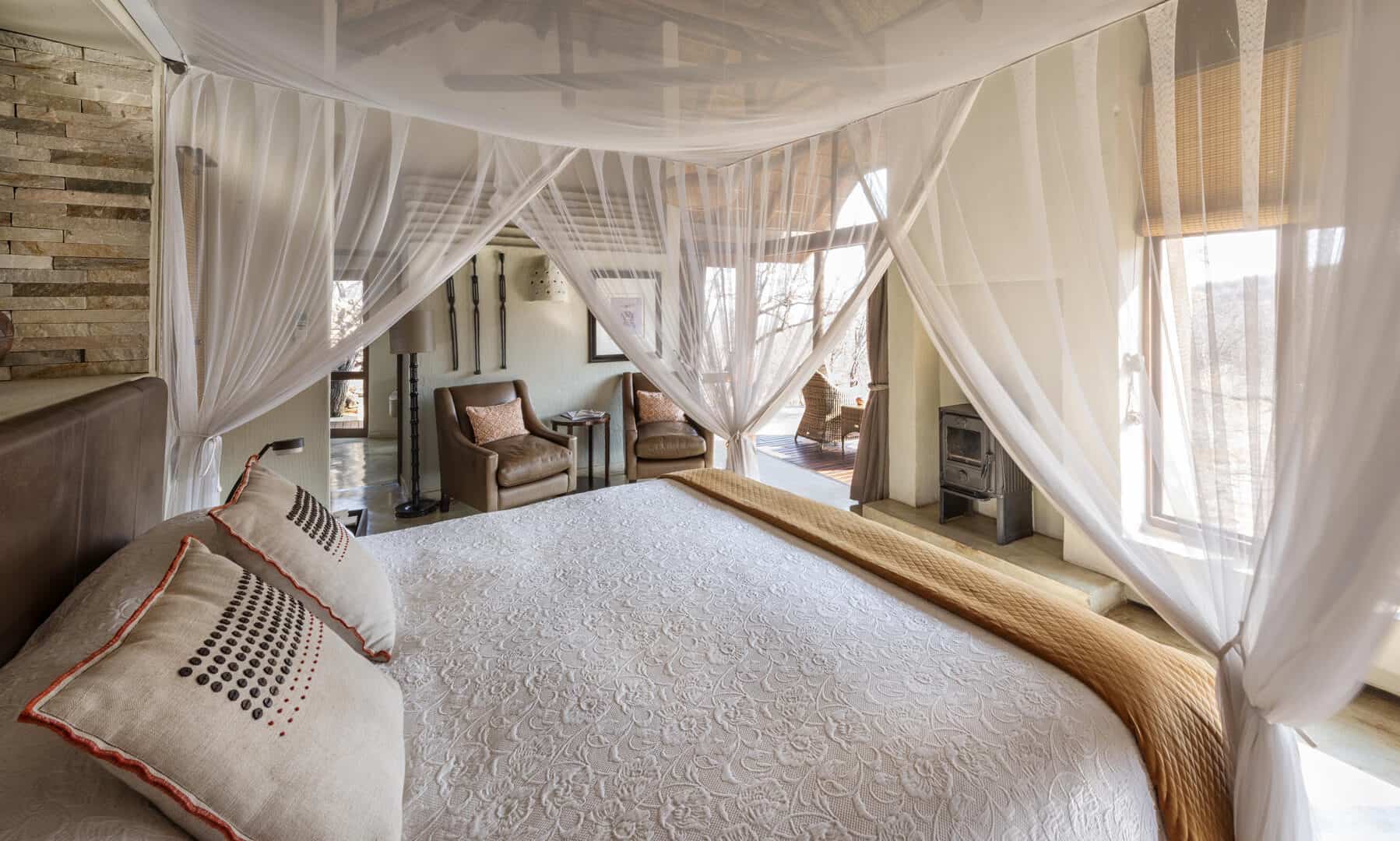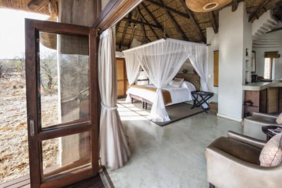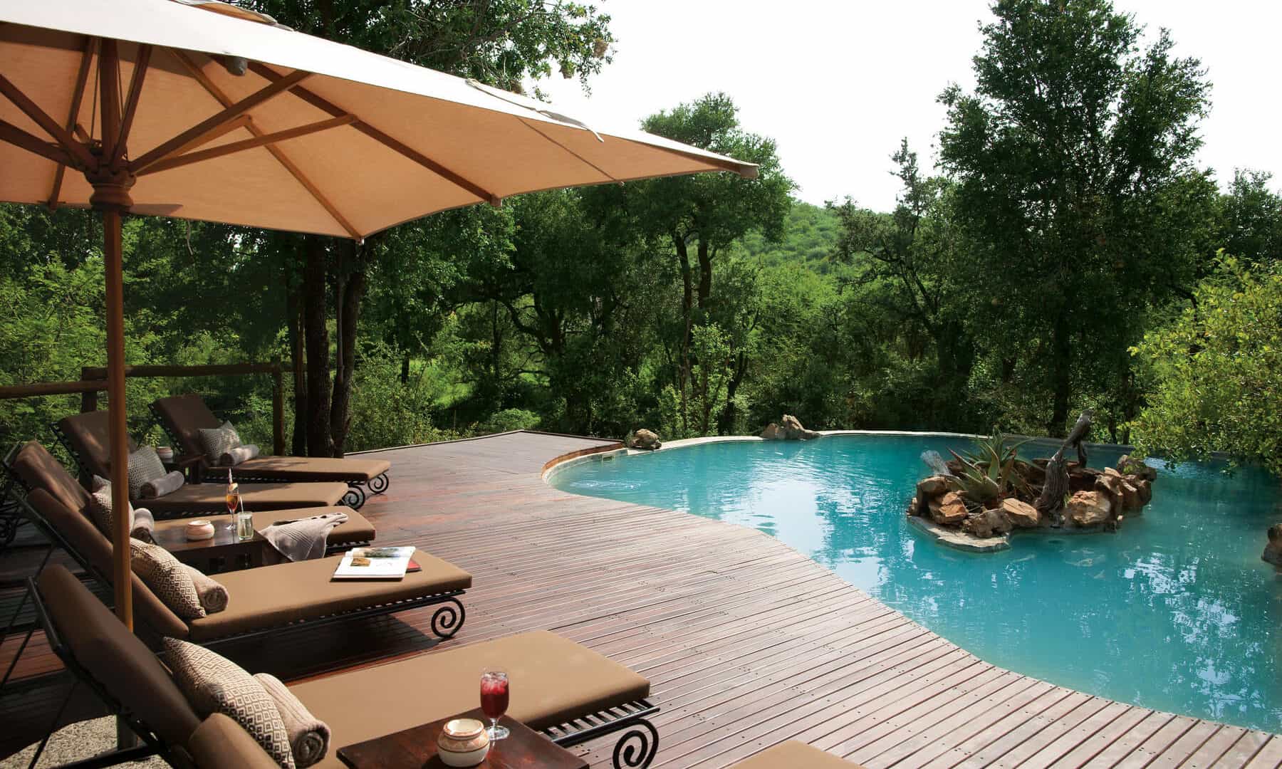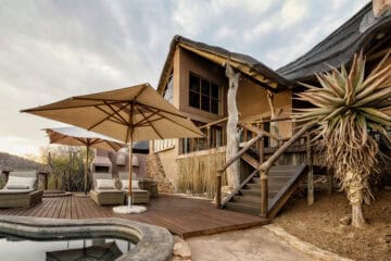 Carved from the hillside, eight glass fronted luxury chalets and one Deluxe Suite line a natural spring, each enjoying striking views of the African Bush.