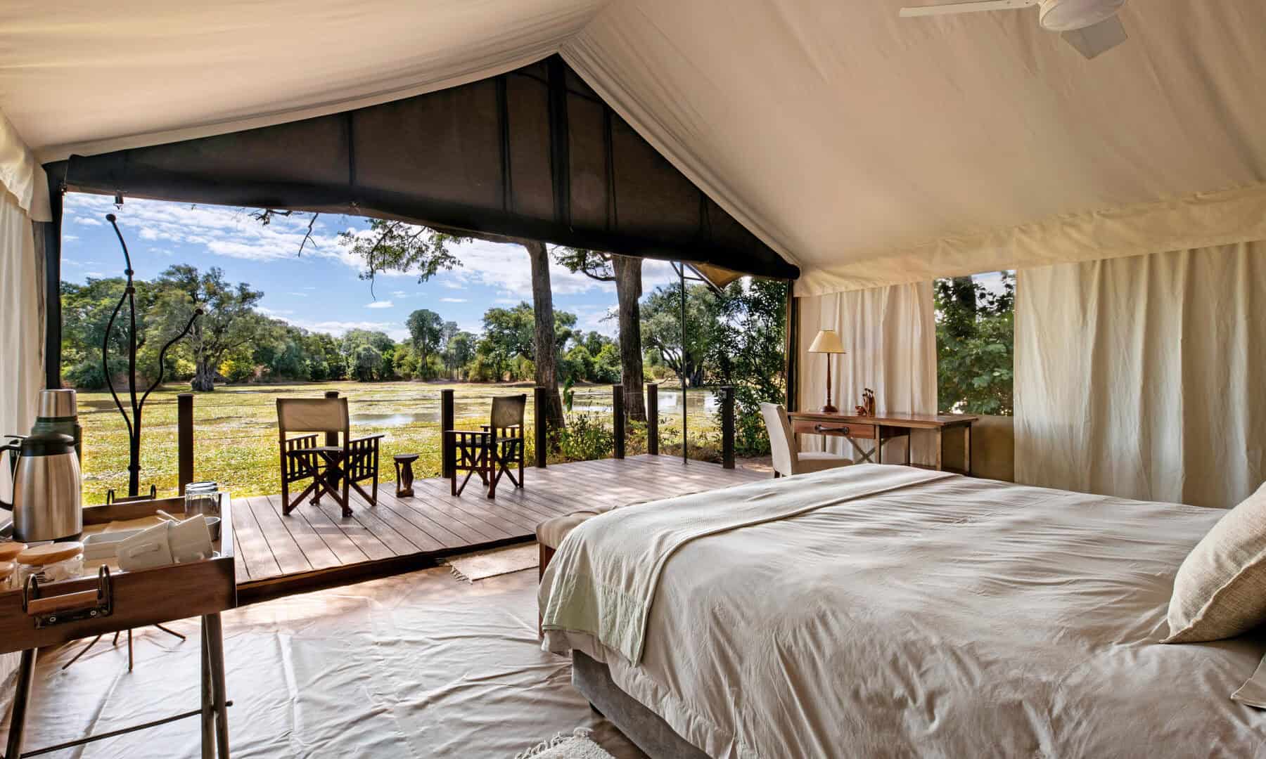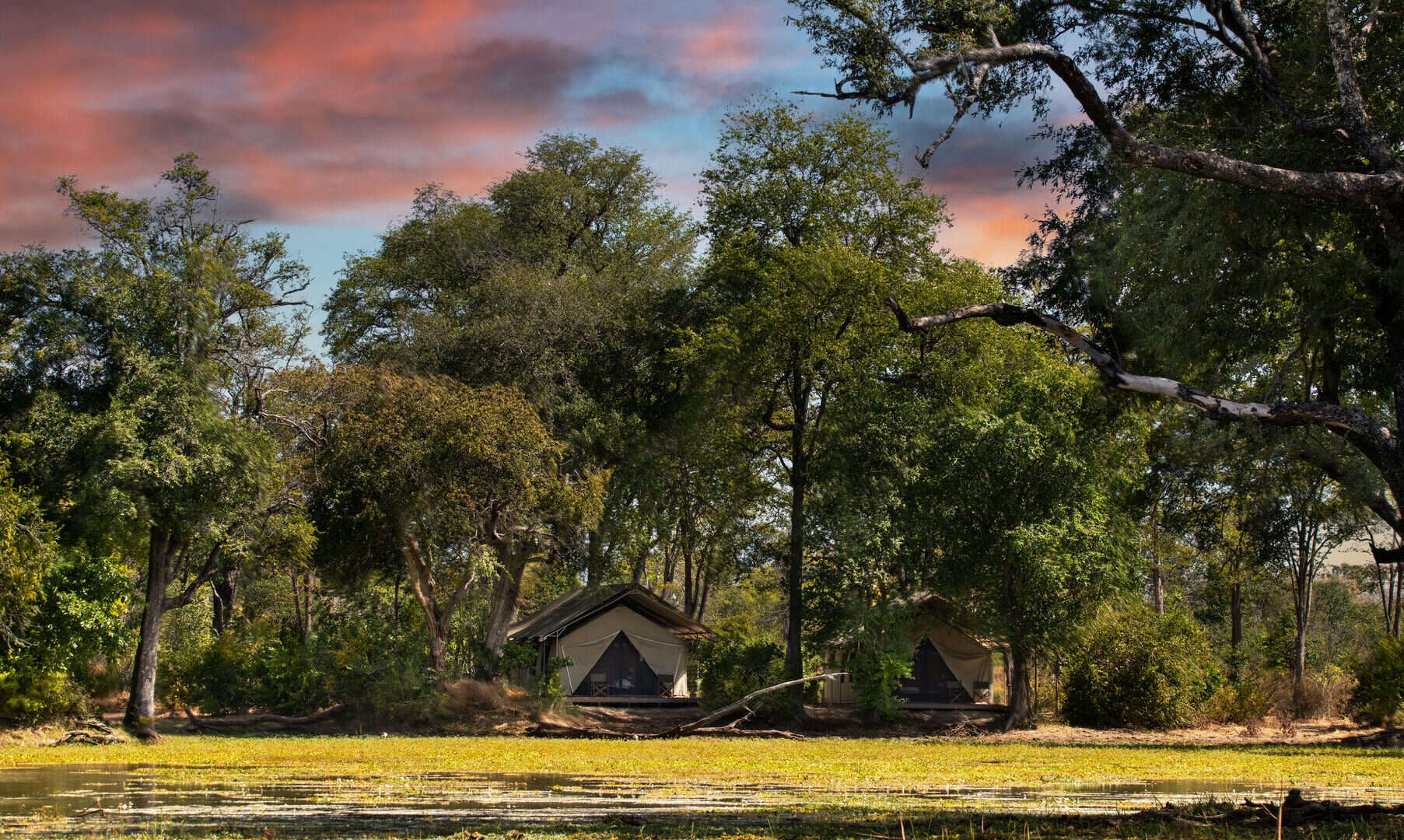 Ingwe Pan is situated at a secluded pan in the wilderness area of Mana Pools National Park, just a few kilometres inland of the Zambezi River and within walking distance of the Chiruwe river bed.