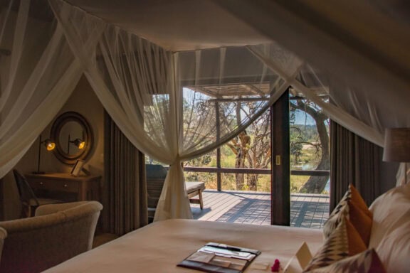 The camp is intimate lodge with only 11 luxury chalets, and is reputed for its highly experienced and knowledgeable game rangers and trackers. The lodge accommodates a maximum of 25 guests maintaining the family ambience it’s become renowned for. The lodge consists of three luxury family chalets and eight luxury standard chalets, all tastefully furnished with uninterrupted views of the African bush overlooking the Sand river.