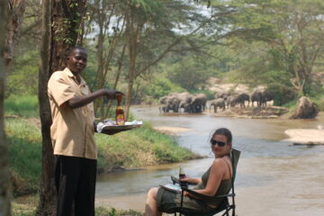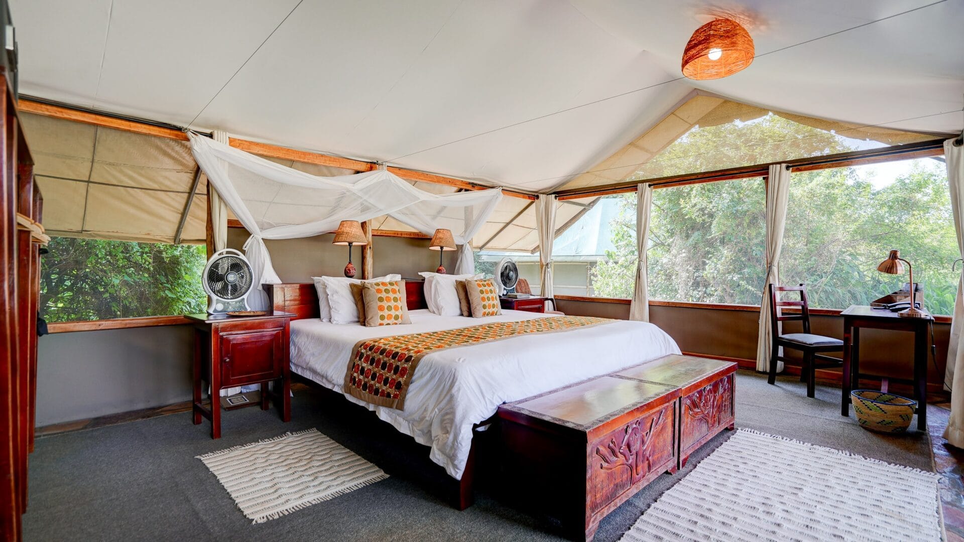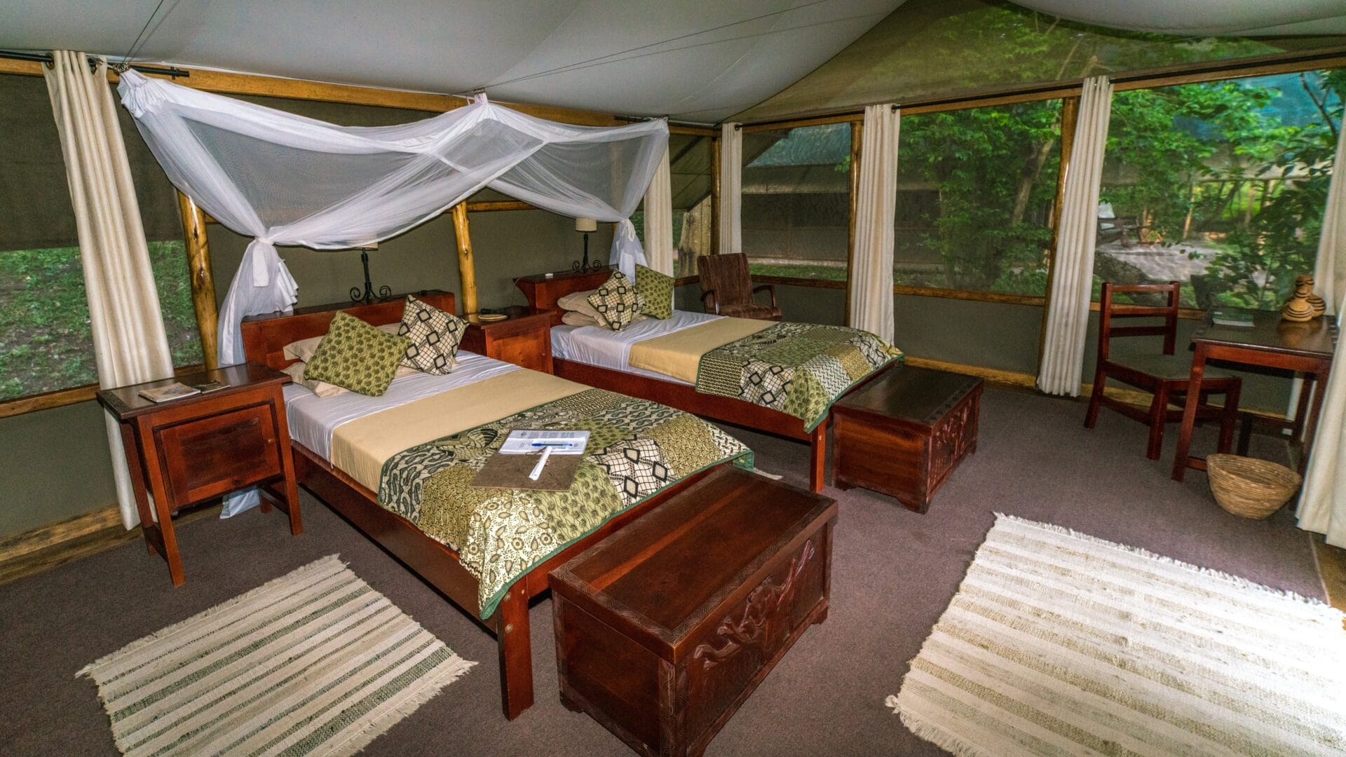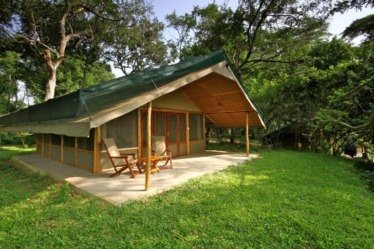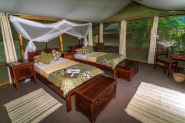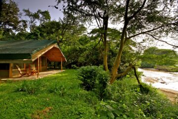 Situated beneath the riverine canopy along the Ntungwe River, Ishasha Wilderness Camp is a secluded, low-impact retreat in the remote southern sector of Queen Elizabeth National Park. With just ten safari-style tents, this is a small and intimate camp, surrounded by rich wildlife.