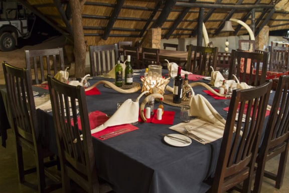Silently, elegantly, the lodge stands over the waterhole…. watch by flood light under a star spangled African night sky – the elephants in their play-fighting….their display of instinctive rituals, their caressing and murmurings…all which speak of years gone by.