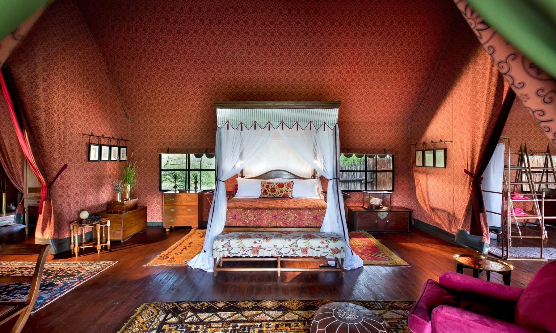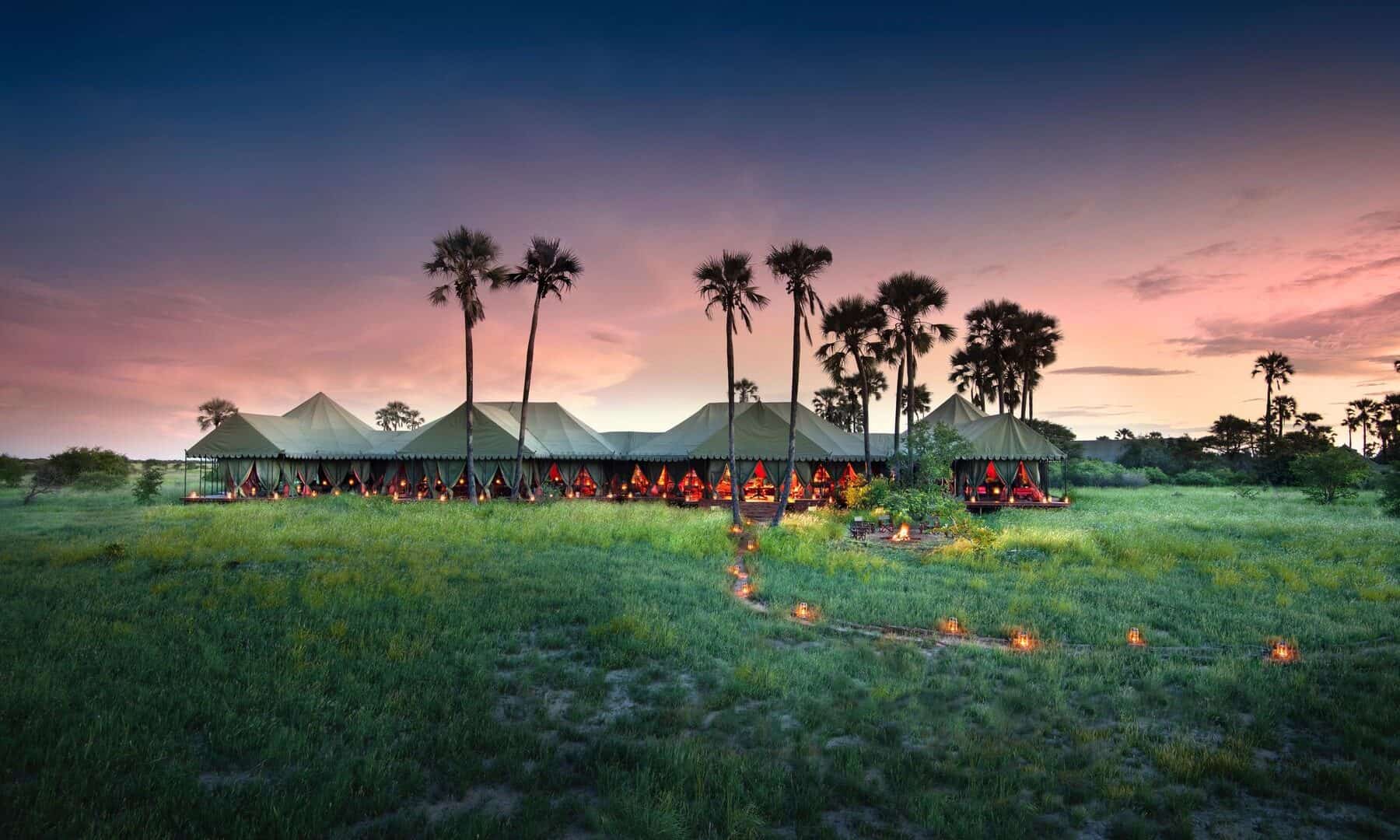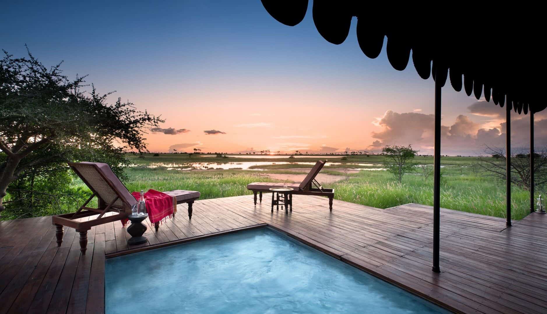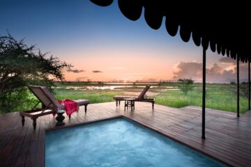 Jack’s Camp, re-opened in 2021, pays homage to the property’s enduring and much-loved 1940s campaign style. The 9 guest tents are about 270 square metres in size, with iconic interiors embellished with rich textiles from around the world, Natural History Museum cabinets, and an overhead bed cooling system. Ensuite bathrooms have both indoor and outdoor showers and outside, each veranda has a private plunge pool.