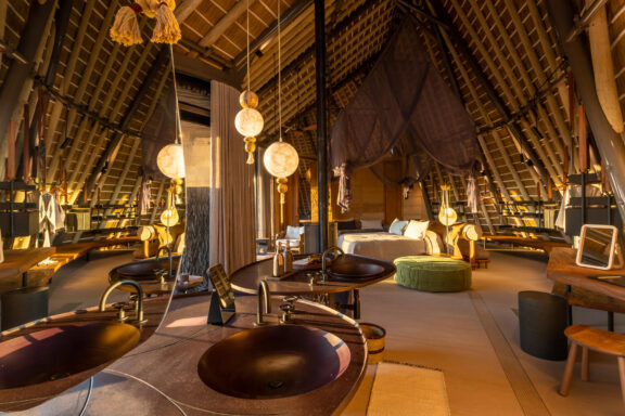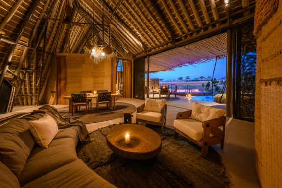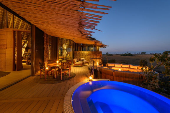Customised luxury guest suites and two ultra-luxe villas share Jao Island with the spectacular main area, which features a pool, a library and an outdoor boma for evenings of traditional food, song and dance. The views of the night skies over Wilderness Jao cement its place in the safari firmament as a star among equals.