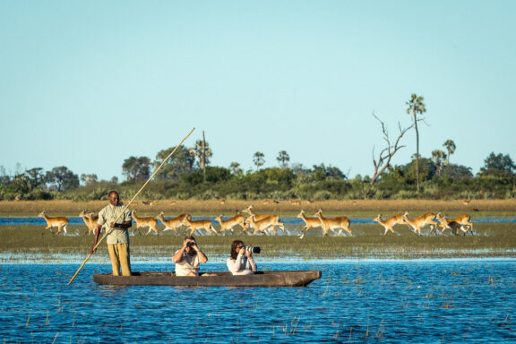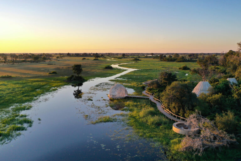 In the heart of the Okavango, luxurious Wilderness Jao is set amongst islands fringed with riverine forests and vast, floodplains with prolific wildlife. Shaded by a canopy of trees, the five spacious suites and two ultra-luxe villas offer en-suite facilities with both indoor and outdoor showers. Expansive views from the private sala at each suite make for a sumptuous setting for afternoon siestas.