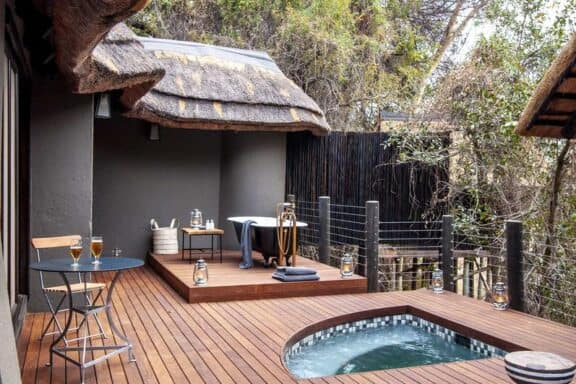 Jock Safari Lodge is carefully screened by lush trees and reed walls, the 12 individual thatched rooms at Jock Safari Lodge, impart a sense of aloneness and oneness with the landscape. Morning and evening drives are performed in covered 4×4 Landrovers conducted by highly experienced rangers in the legendary Kruger National Park.