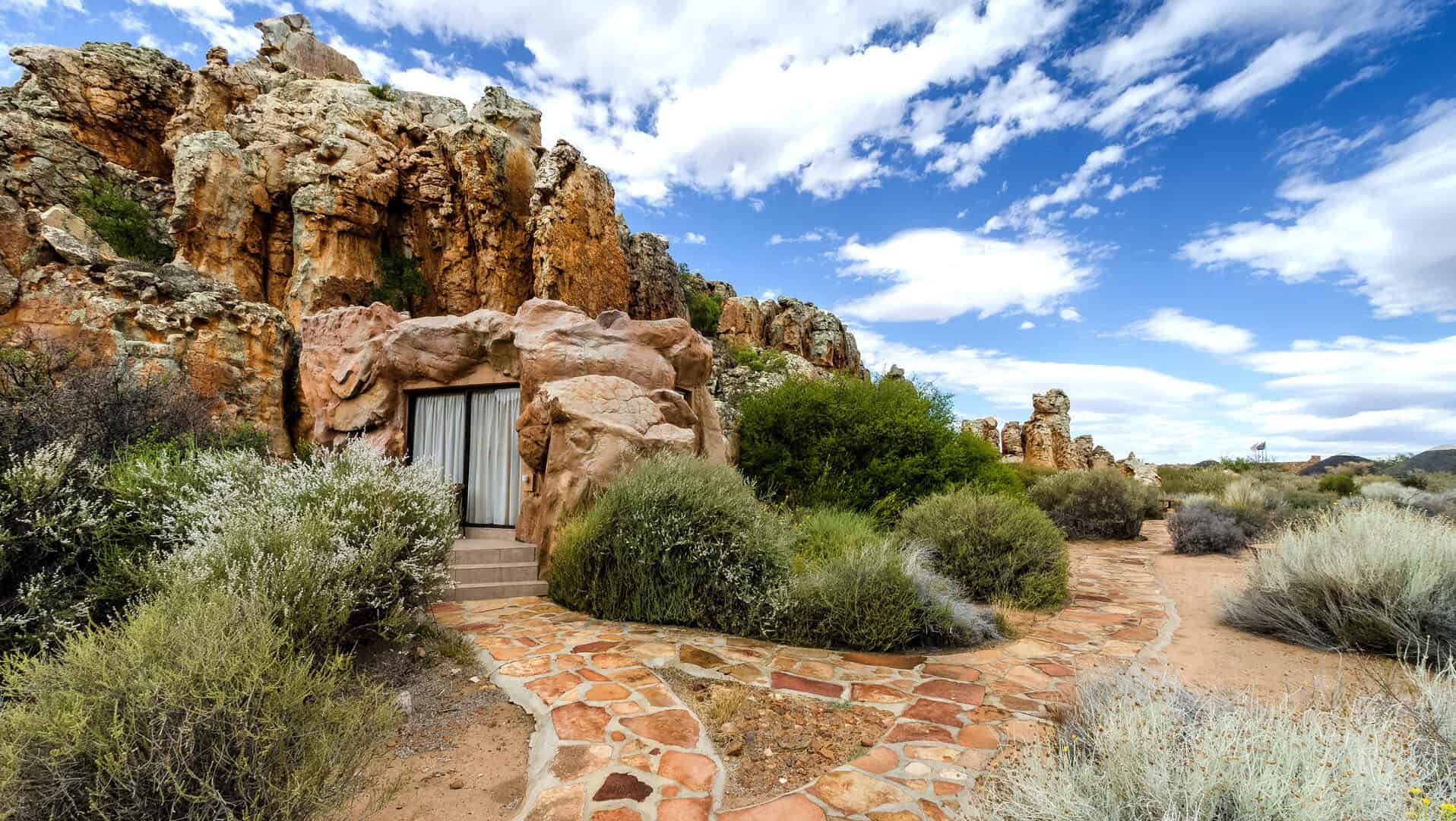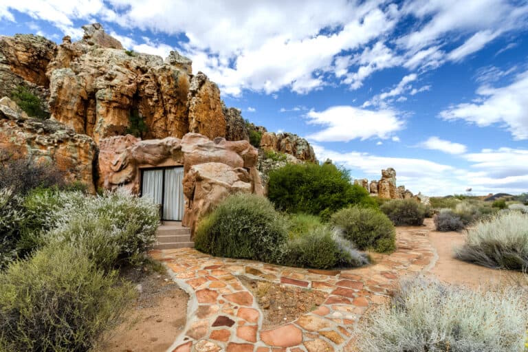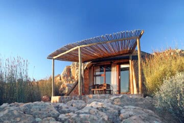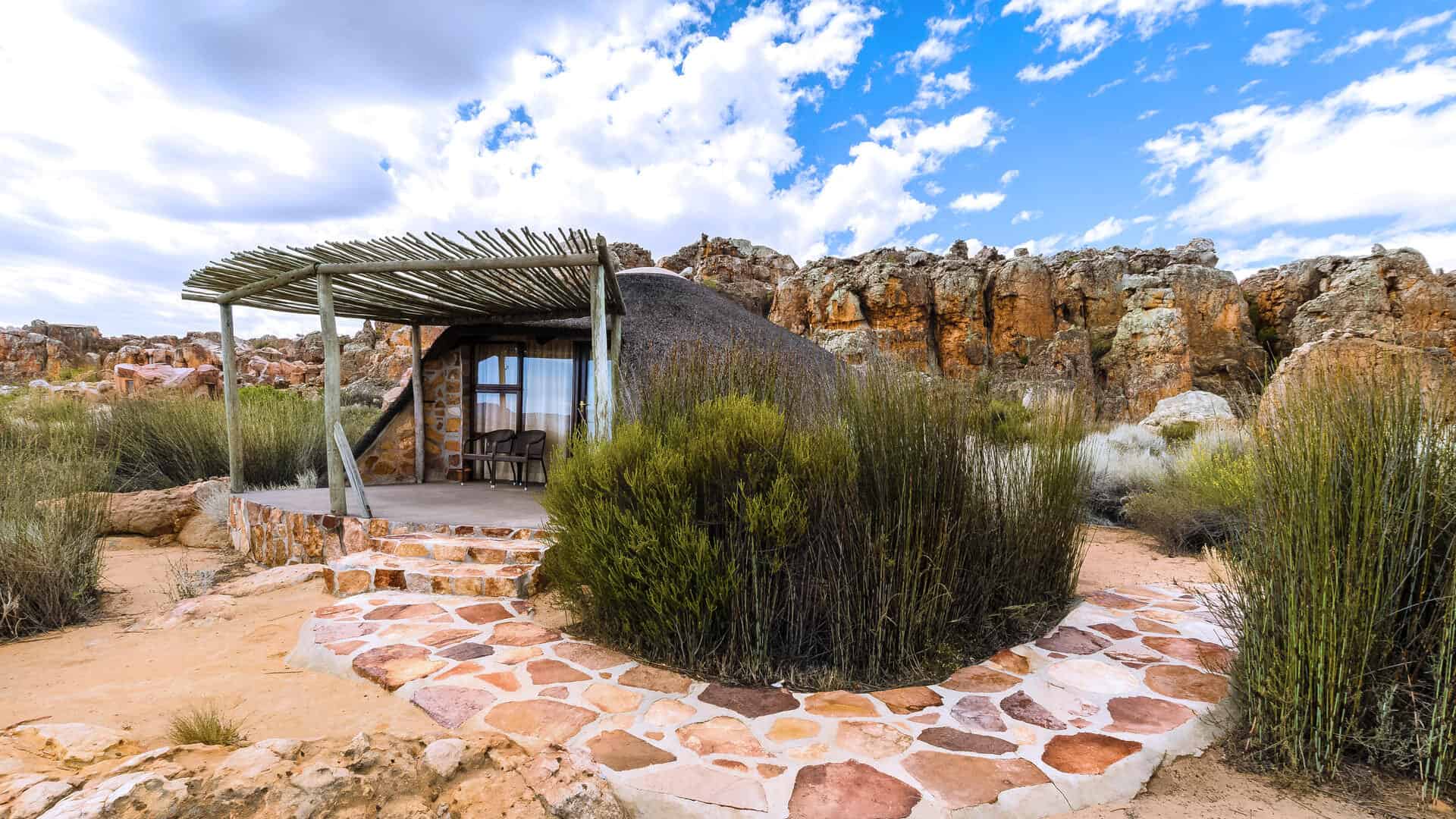 Kagga Kamma Nature Reserve is nestled in the wilderness of the Swartruggens area, in the peaceful Southern Cederberg Mountains, in the Western Cape. The Reserve is renowned for its scenic beauty and dramatic rock formations typical of the Cederberg region. With a rich and fascinating Cultural Heritage, this area offers spectacular scenery, ancient Rock Art sites, amazing indigenous fauna and flora, phenomenal night skies and small critters that are scarcely seen in other parts of the country. The unique accommodation options add to the sense of adventure. Choose between a ‘Cave’ Suite, beautifully integrated with the sandstone rock formations; or spacious Hut Suite, resembling the traditional dwellings inhabited by the clans of the area many years ago.