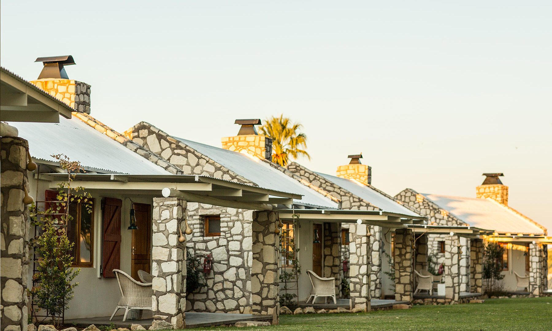 A lush secret-garden in the arid Kalahari. This intimate lodge has 11 chalets finished with colourful quilts, fireplaces and cosy farmhouse charm. Visit the adjacent Self-Sufficiency Centre, join a trip into the Gondwana Kalahari Park to watch the sunset over the fiery red dunes, and rest.