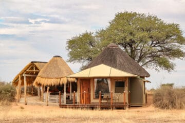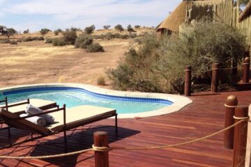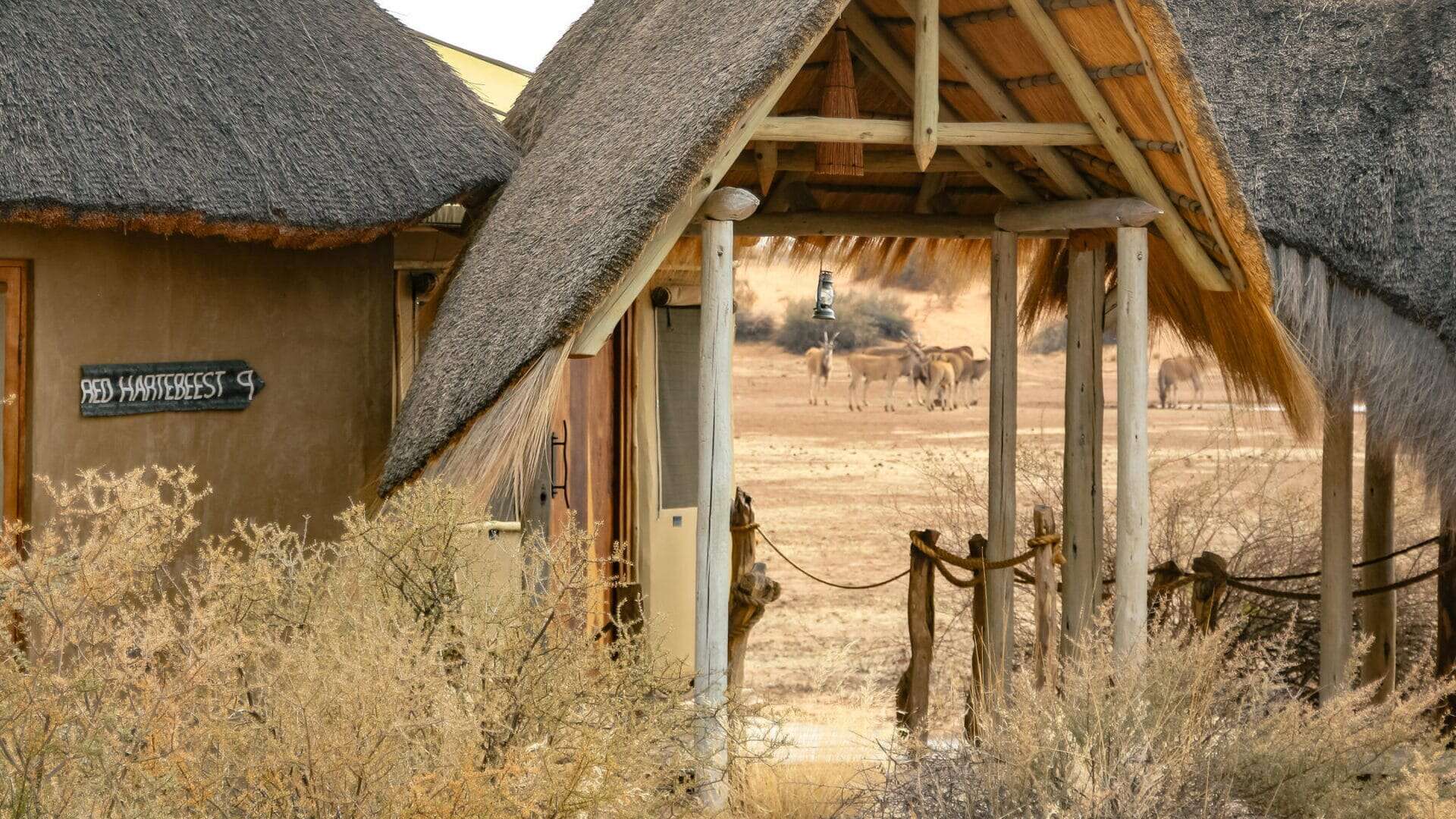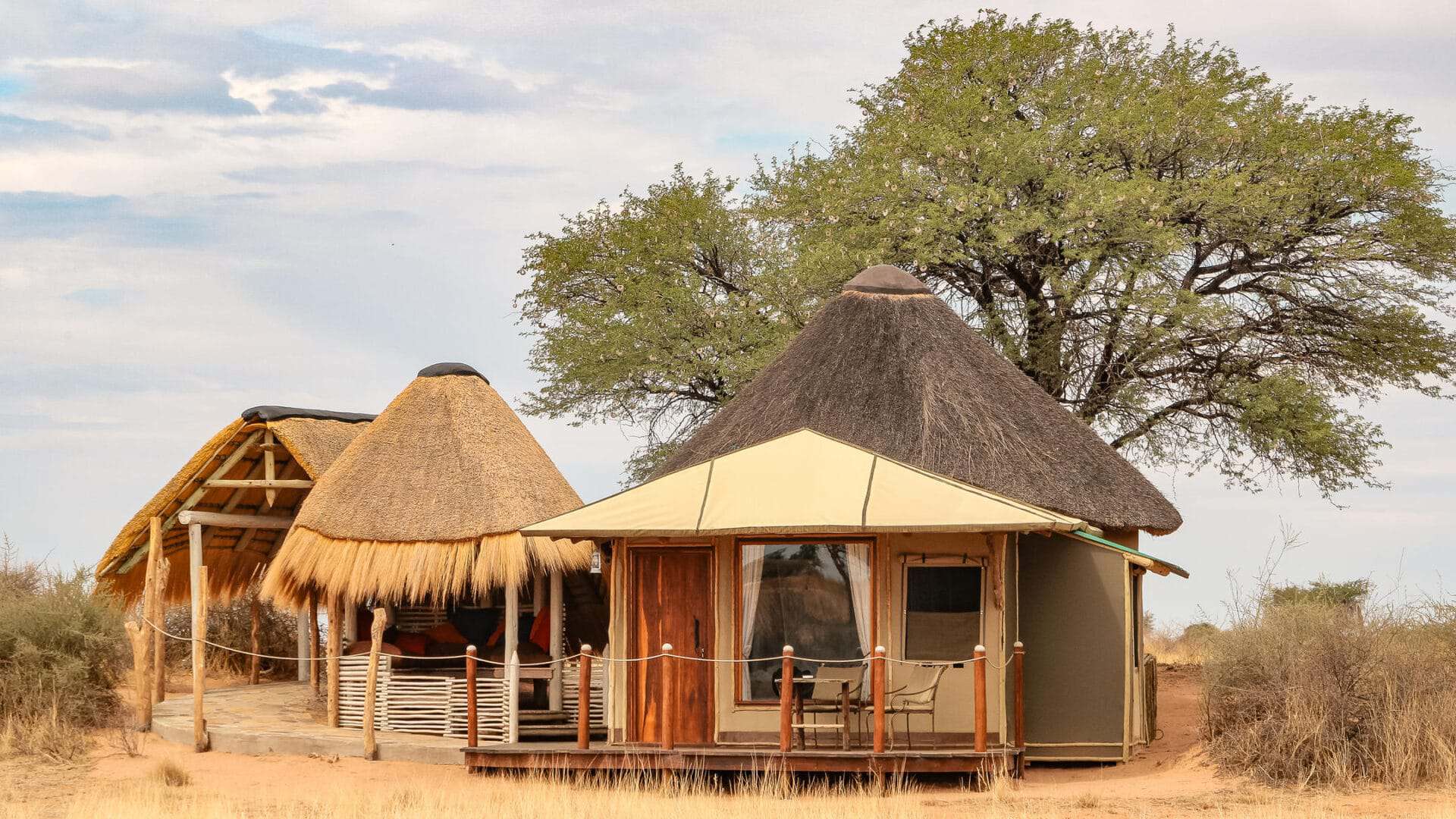 Each chalet has a thatched roofed tented and a stoned section as well as a private terrace. During the Nature/ Game Drives and nature walks guests can experience the breathtaking beauty of the Kalahari with it’s up to 30 m high red dunes and a huge variety of game.