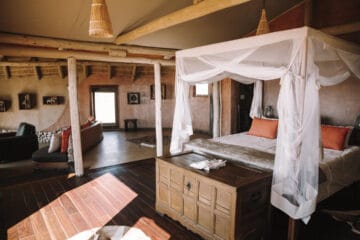 A lodge designed with a lot of passion for details, is located in the impressive Kalahari landscape characterized by red sand dunes and camel thorn trees. Its “Luxury of Solitude”, offers ample space and privacy.