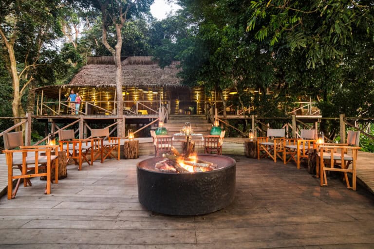 From the raised viewing deck, built high among the towering trees, you can sip your morning coffee and watch monkeys and rare birds move through the canopy. Ngaga Lodge is the definition of a Republic of the Congo luxury lodge and one of the most sought-after Odzala accommodation options, giving you direct, immediate access to the forest’s world.
