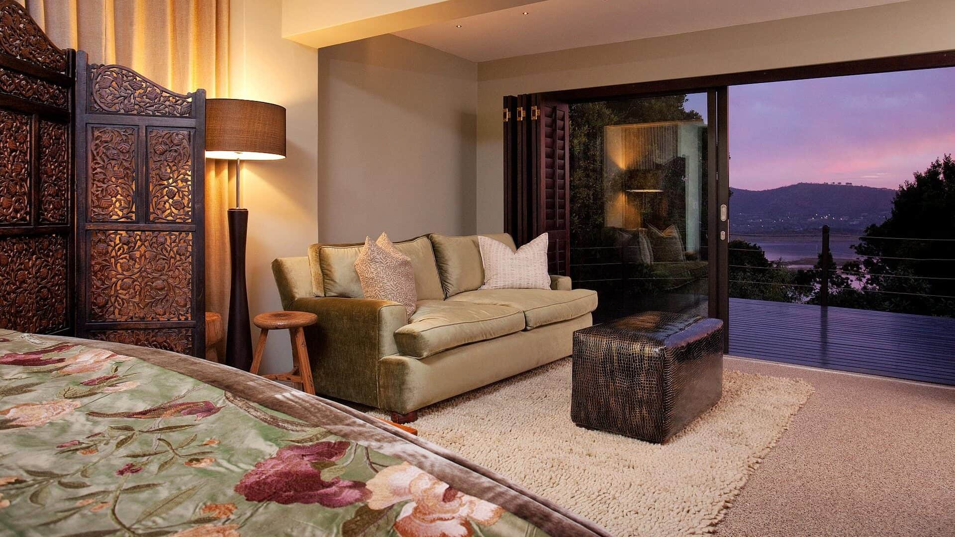 Tucked into the treetops above the coastal town of Knysna, Kanonkop House offers a peaceful retreat on the edge of the Garden Route’s indigenous forest. With sweeping views across the Knysna Lagoon and out towards the iconic Heads and Indian Ocean, this small, privately owned property is designed for travellers seeking a relaxed yet refined experience.