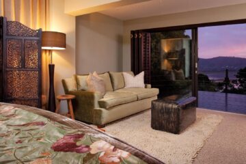 Tucked into the treetops above the coastal town of Knysna, Kanonkop House offers a peaceful retreat on the edge of the Garden Route’s indigenous forest. With sweeping views across the Knysna Lagoon and out towards the iconic Heads and Indian Ocean, this small, privately owned property is designed for travellers seeking a relaxed yet refined experience.