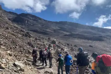 The journey would take about 5 hours, and climbers get to experience the alpine desert landscape of Mount Kilimanjaro.