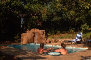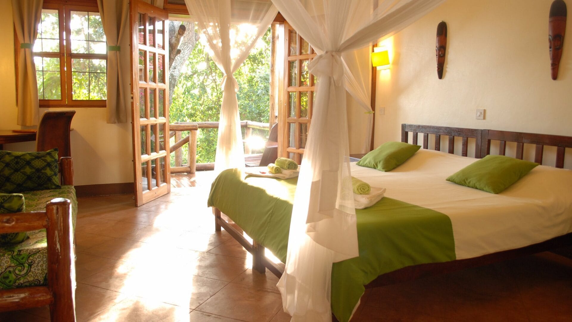 The open-air veranda restaurant and upstairs terrace offer a Mediterranean-styled menu from which you can enjoy the abundant birdlife in the garden, the sunset over Lake Victoria or the brilliant night sky.