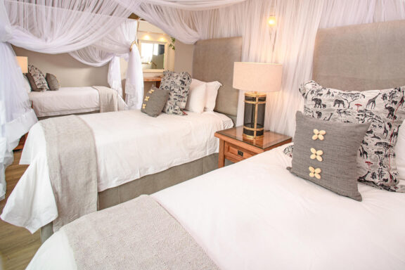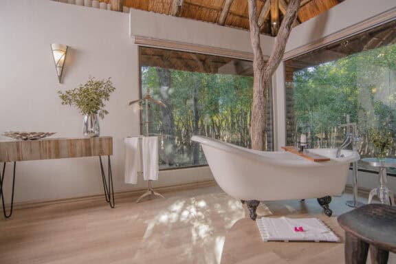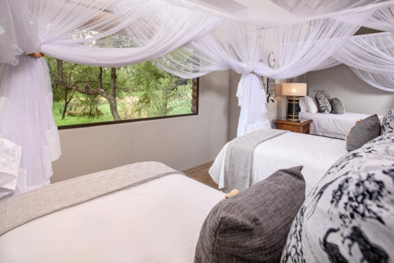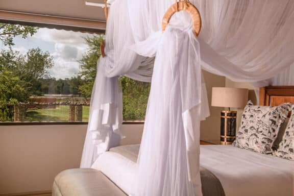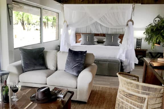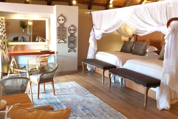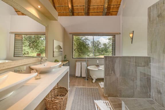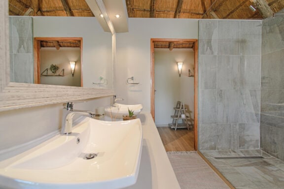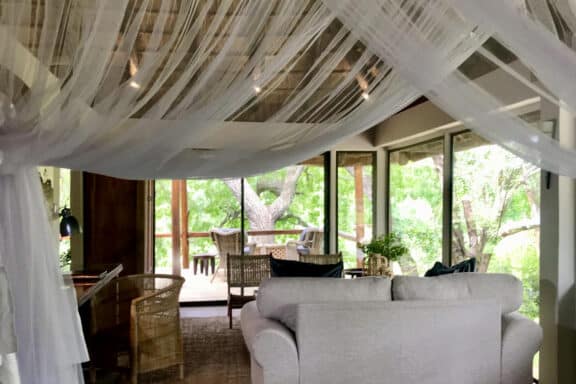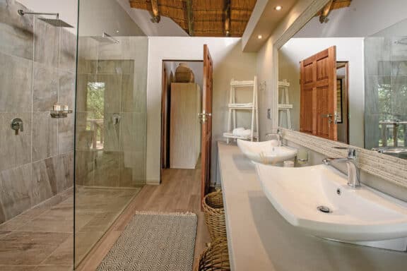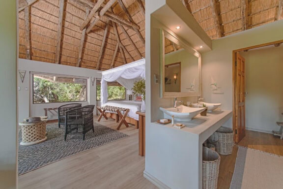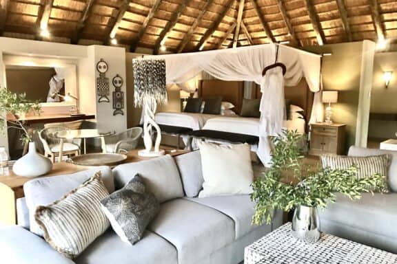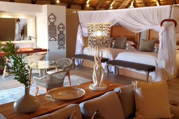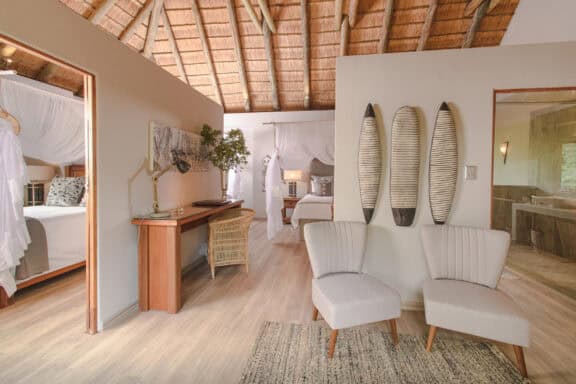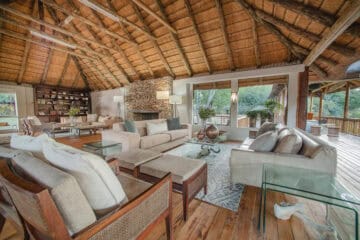 The spacious lounge leads onto a vast deck allowing for endless opportunity to view elephant and grazing antelope, or spend the afternoon relaxing beside the pool before being whisked away on a late afternoon safari in an open game drive vehicle, traversing over the 9000 hectares of supreme African bushveld, tracking the Big Five.