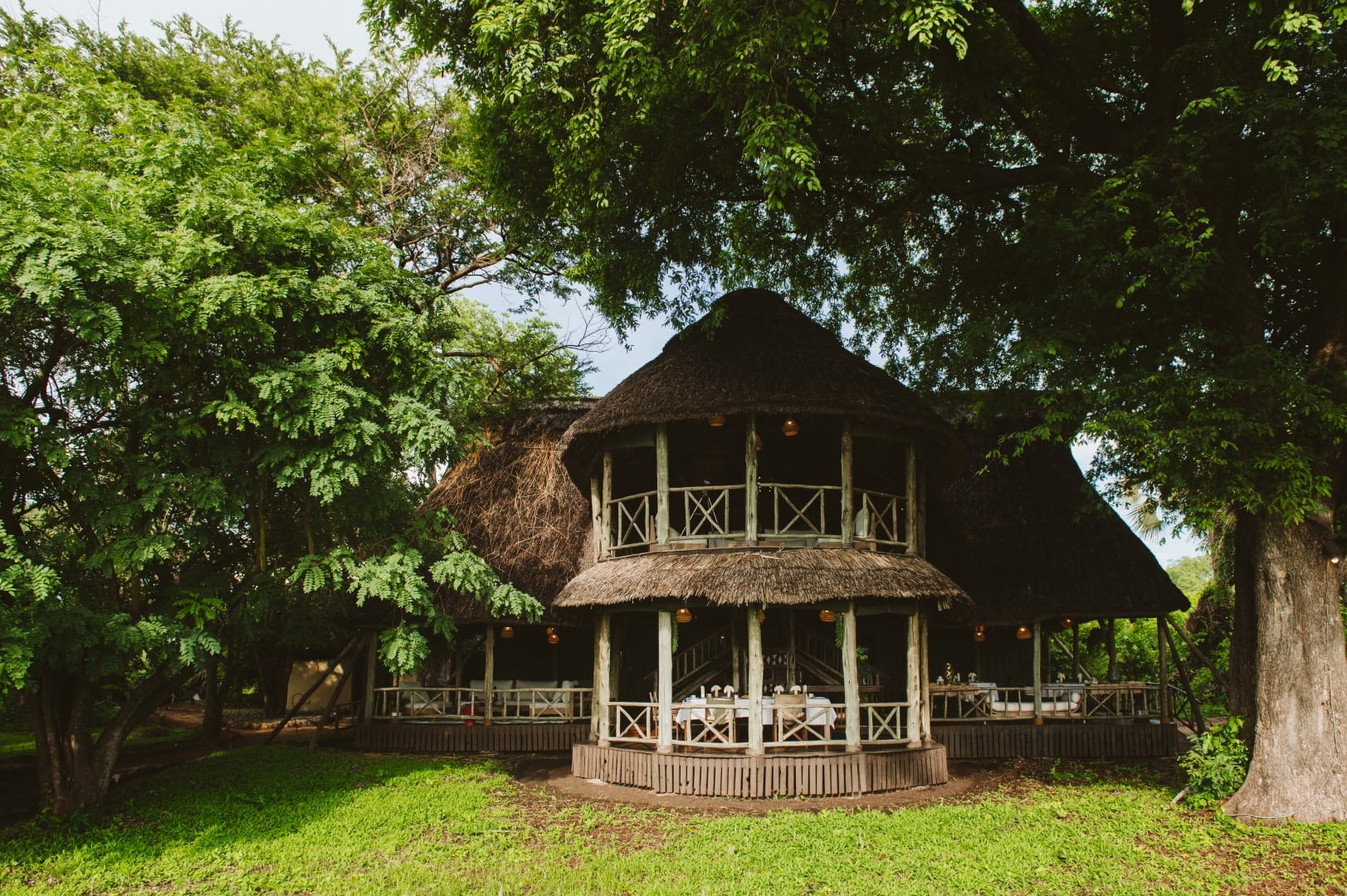 The two-story main banda, overlooking the Katuma river and floodplain, serves as a communal area for dining and relaxation, complemented by a fire-pit for evening gatherings.