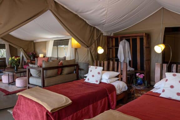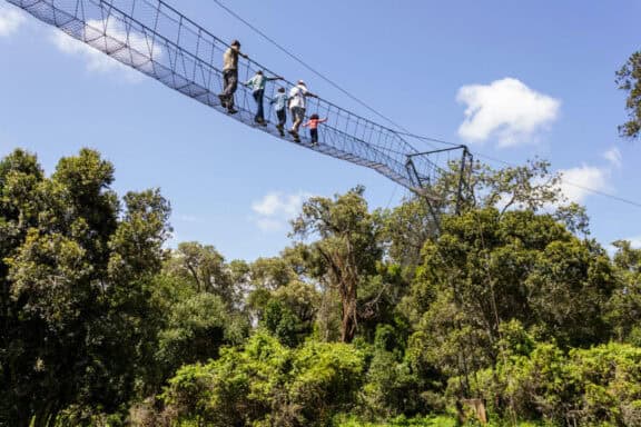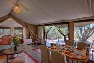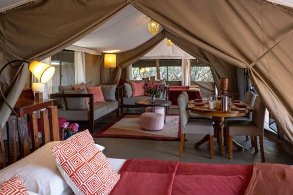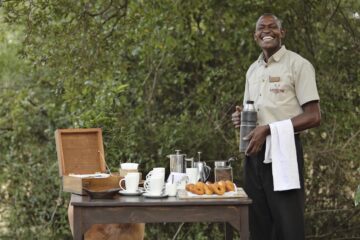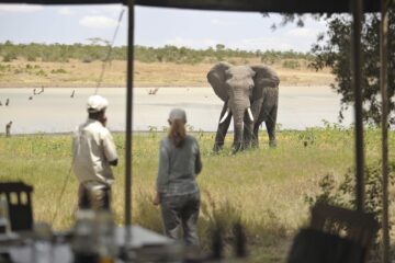An eco-award-winning small luxurious tented camp nestled in the shadows of Mount Kenya at the foot of an indigenous forest overlooking a waterhole.