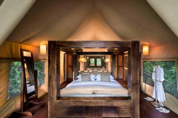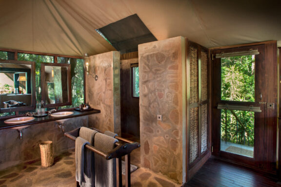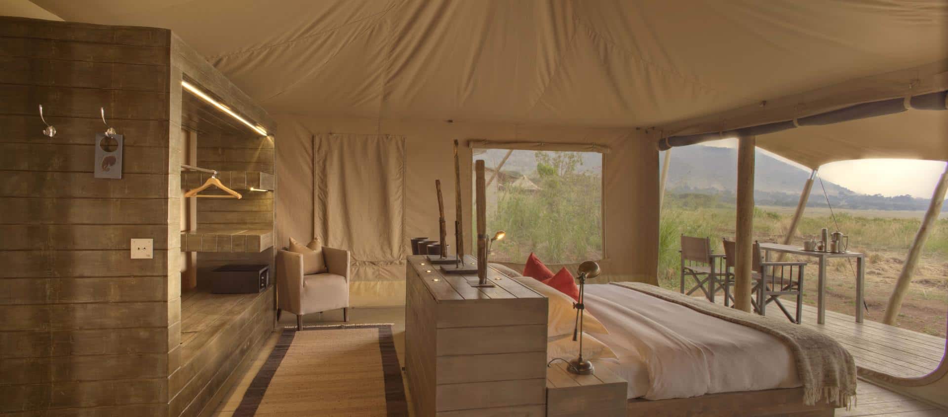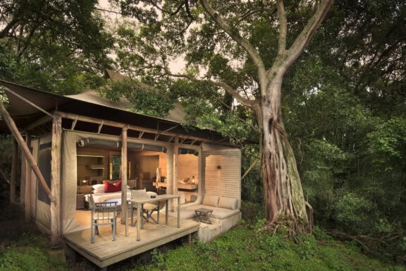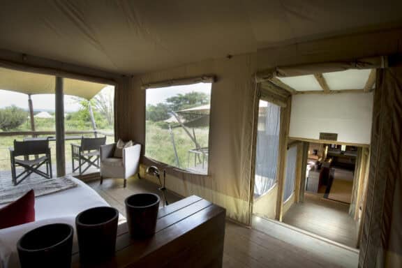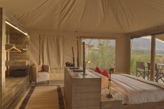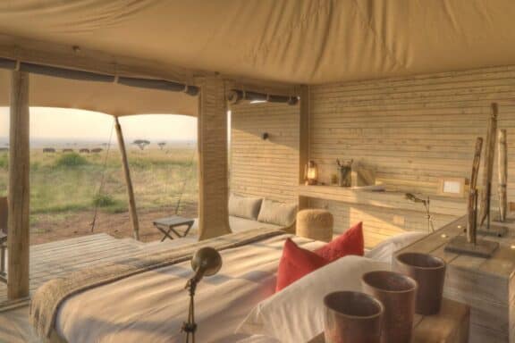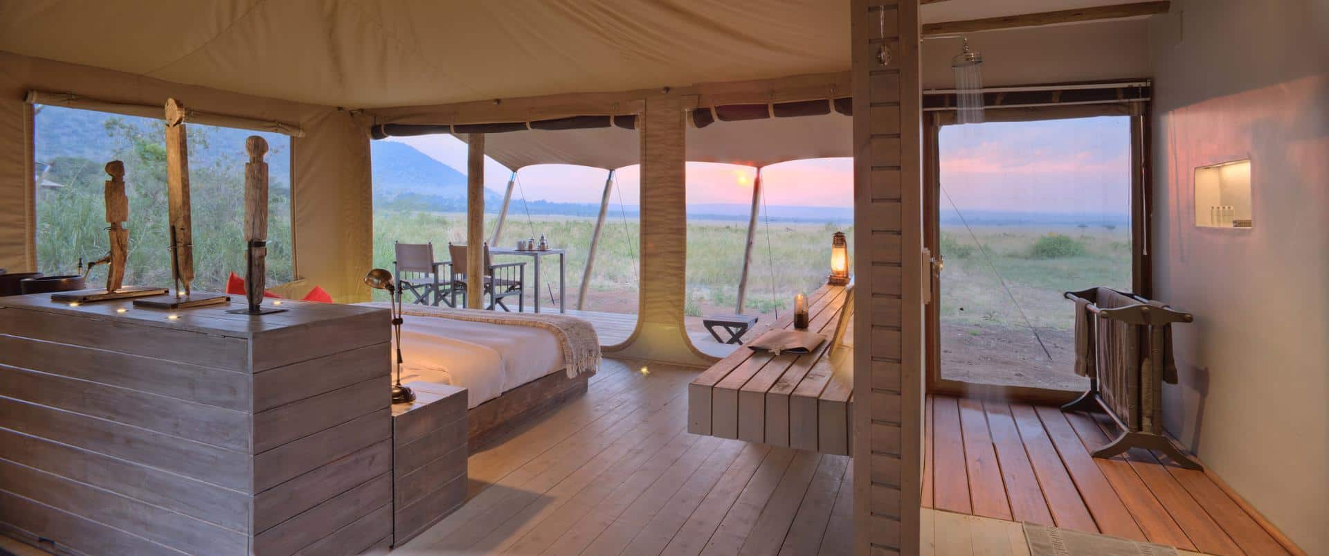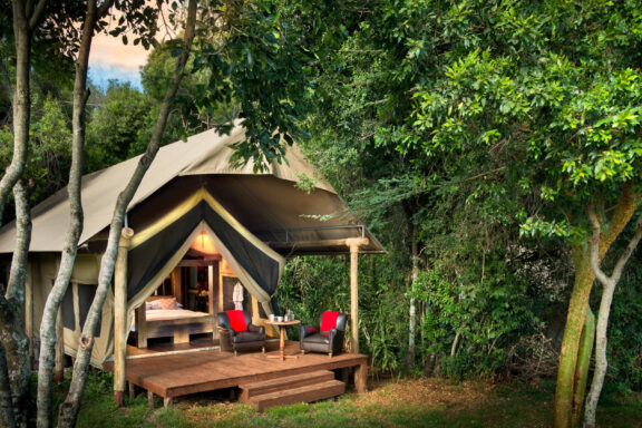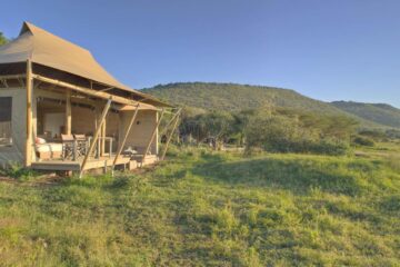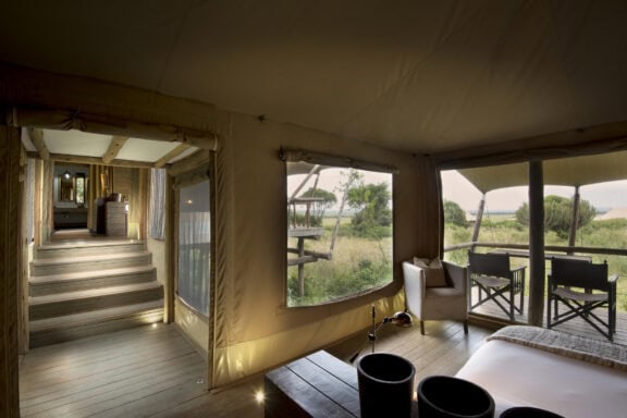 While all the tents look out onto the open grasslands or the shady forest surrounding the Saparingo River, the superior view tents boast exceptionally beautiful, uninterrupted views of the Masai Mara.