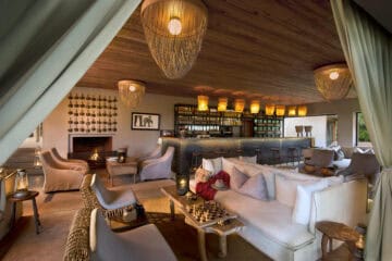 Opening up onto incredible Masai Mara views, the guest areas feature a double-story bar and lounge area with oversized windows offering spectacular panoramas.