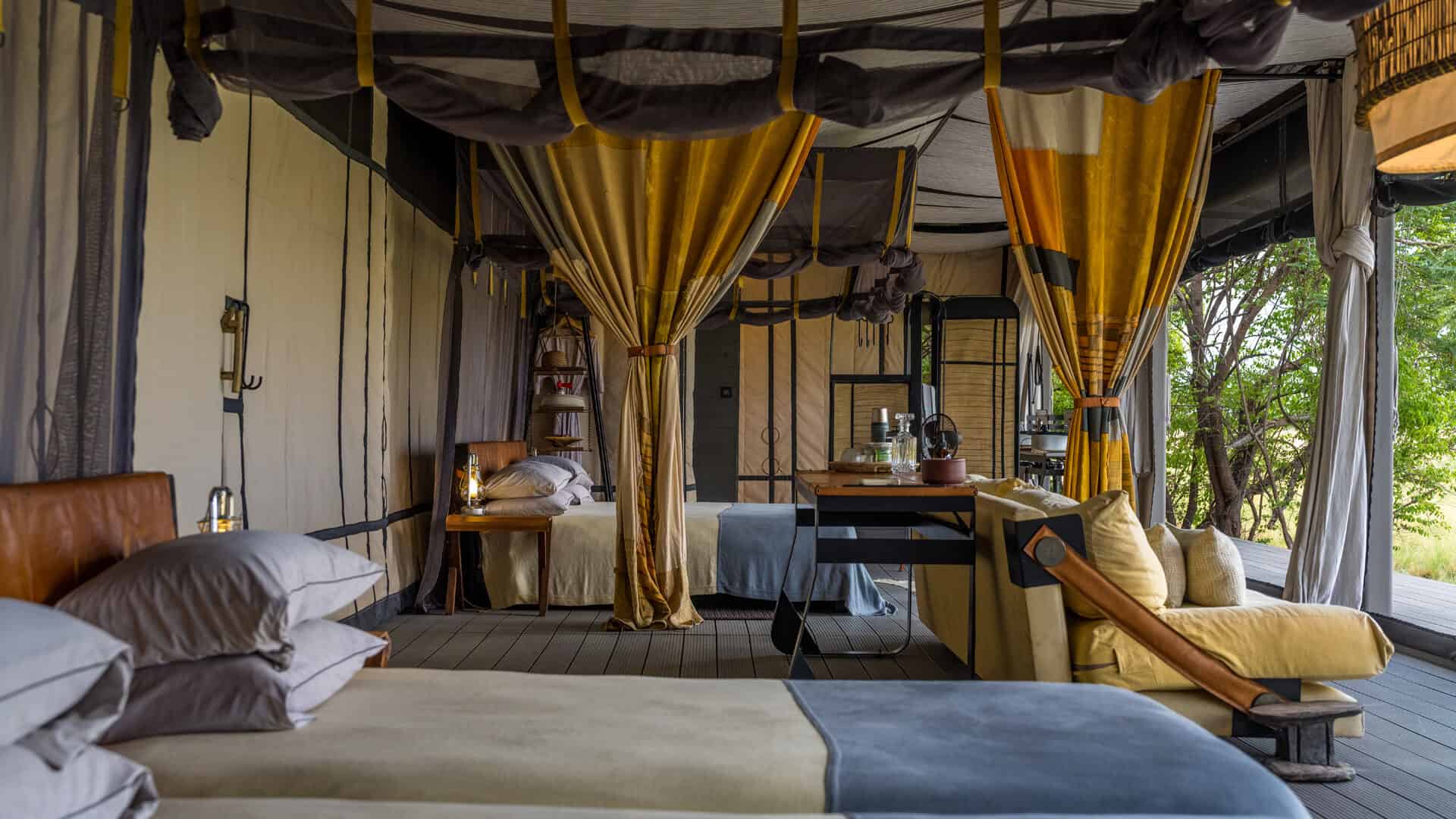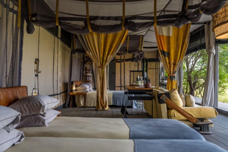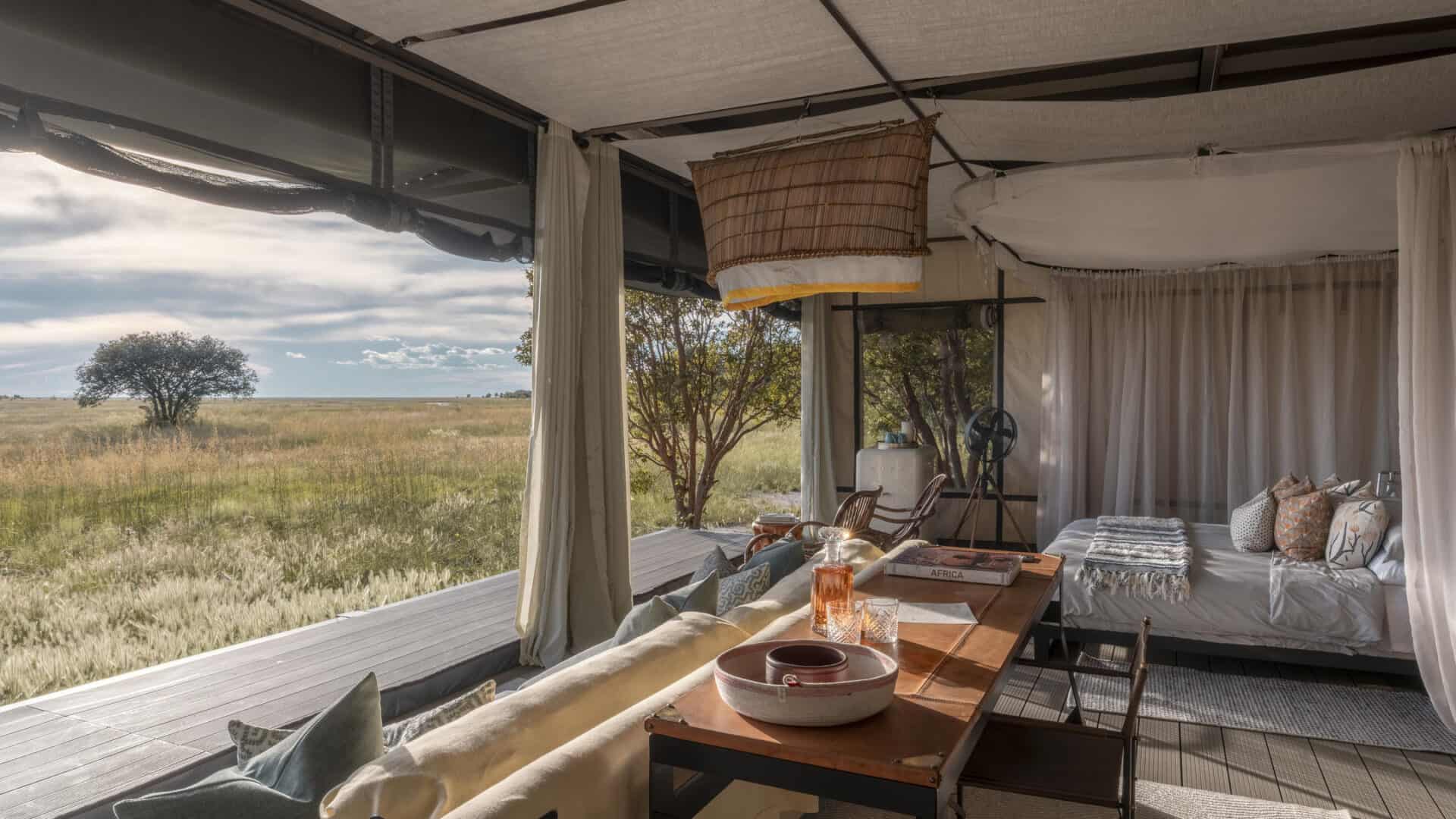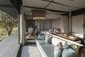 Perched among magical pockets of woodland, each tent celebrates breathtaking views of the vast Liuwa Plain from private expansive verandas. The location provides front-row seats to Africa’s second-largest wildebeest migration and encounters with diverse predator species, while over 350 bird species soar overhead.