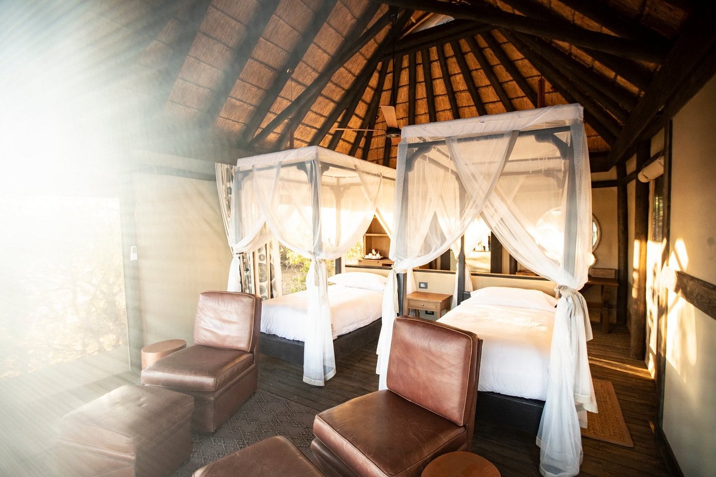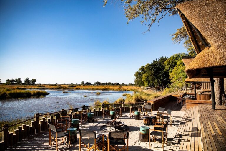 The lounge, dining room and pub areas are on expansive raised decks. There is also a communal pool and an open-air ‘kgotla’ for dining under the stars.