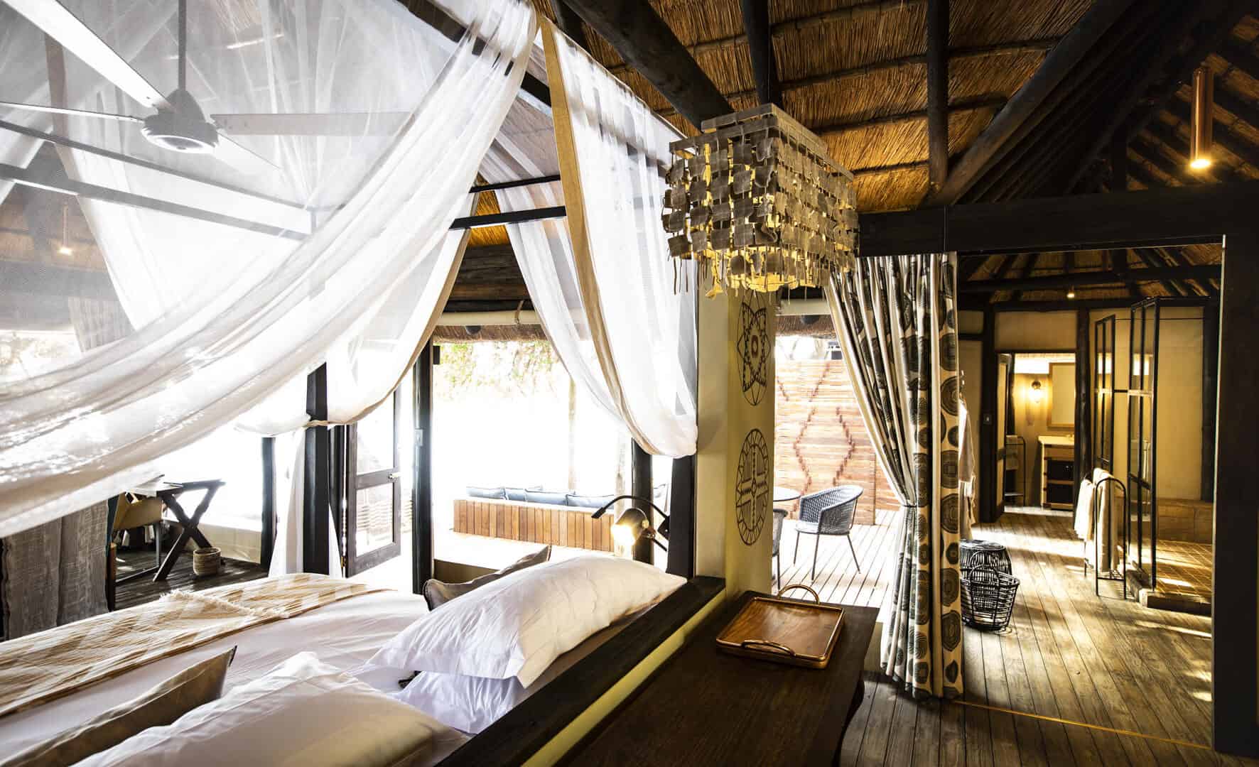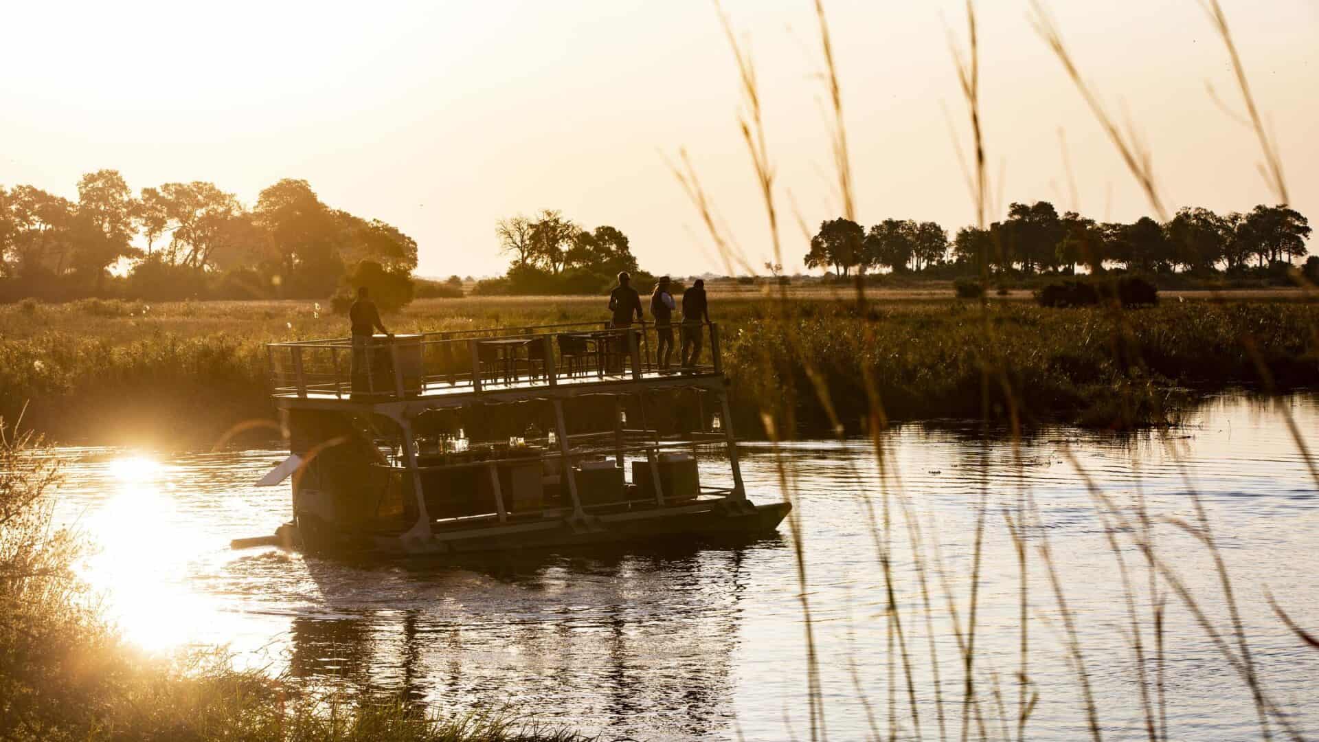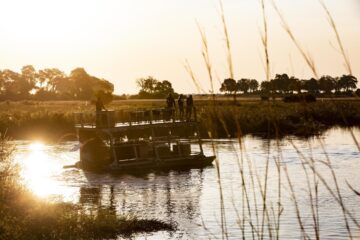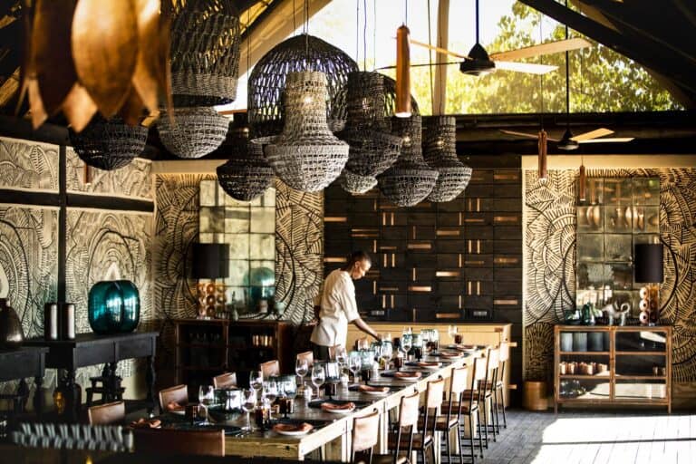 You can enjoy a refreshing dip in the communal pool or dine under the stars in the open-air ‘kgotla’. For a unique perspective, visit the underground hide to see elephants at eye level or take a sunset cruise on the Queen Silvia barge.