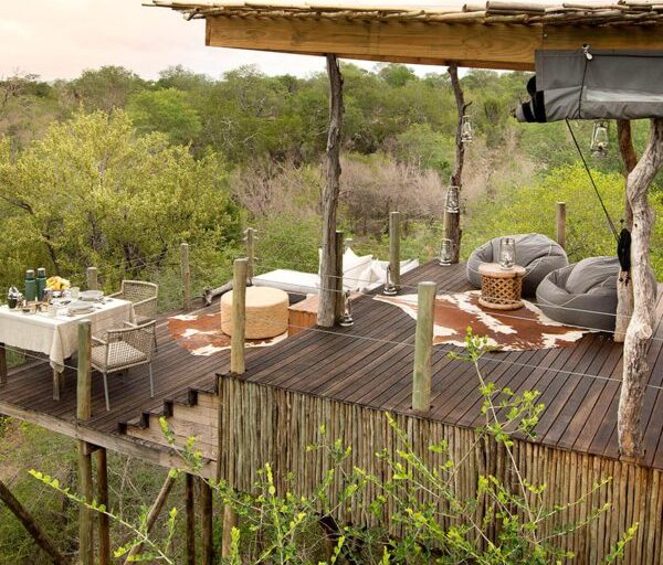 The 60m2 Treehouse is about 5 minutes from the main lodge, and you will have radio contact with the rangers, should you choose to.