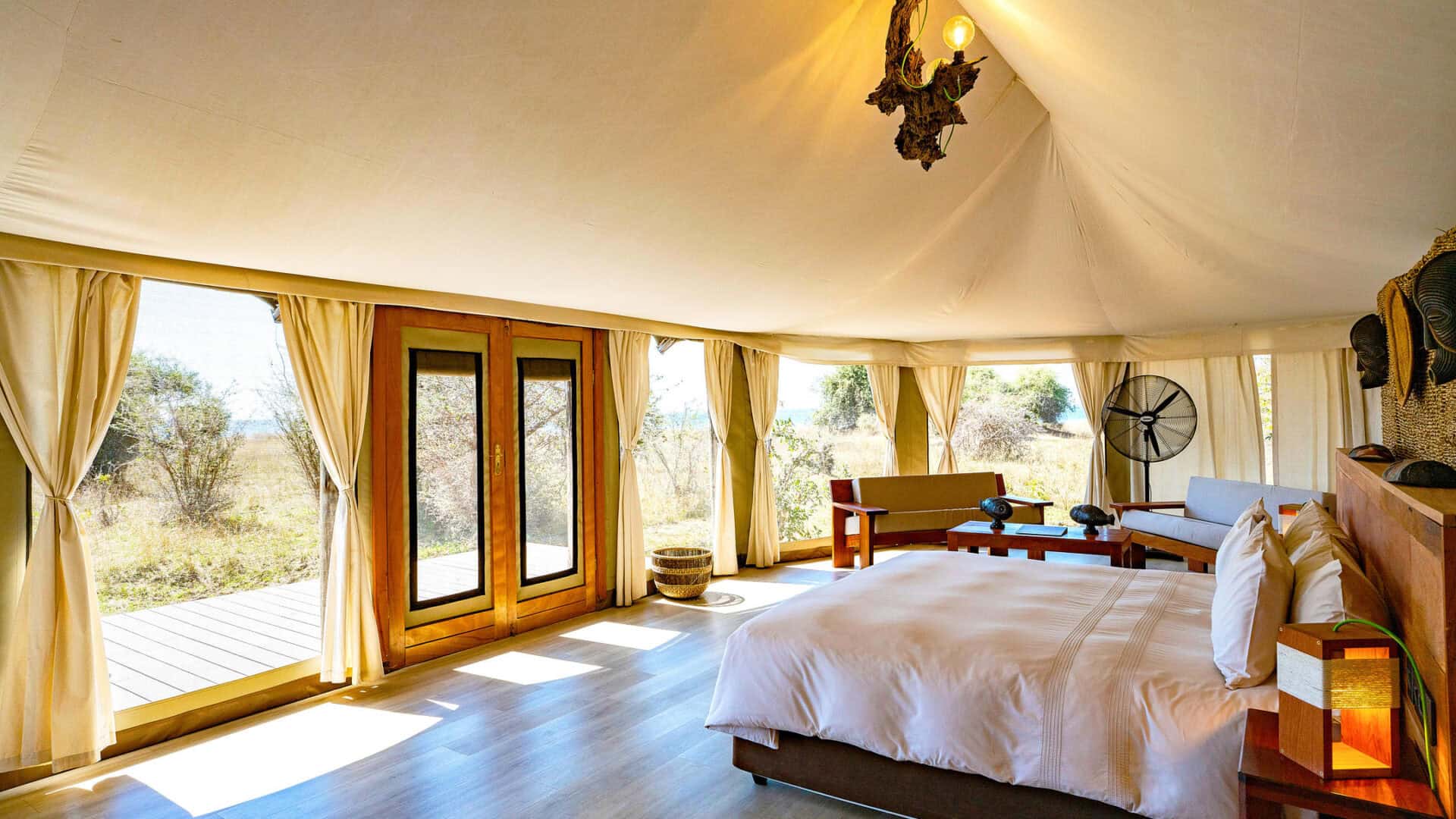 East-facing, all tents look across the breezy lake, with marvellous views of the renowned African sunrise. All around are mahogany, ebony, baobabs…