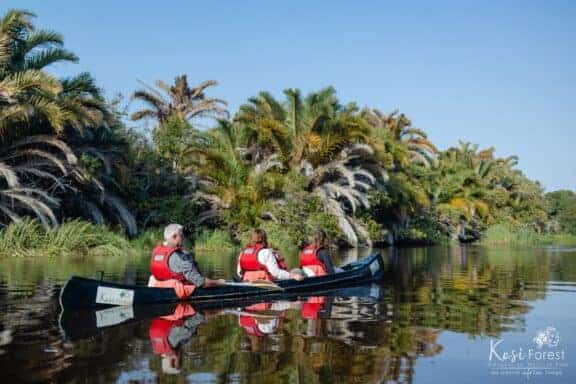 Daily guided canoe trips and walks through ancient Raphia Palm Forests are offered at no additional cost.