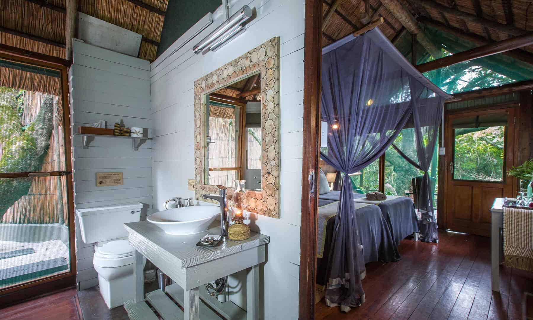 A lovely sweeping pool overlooks Lake Shengeza where one can relax on the viewing deck in the shade of Umdoni trees while watching hippos & flamingoes in the lake.