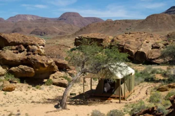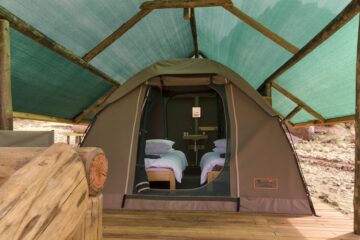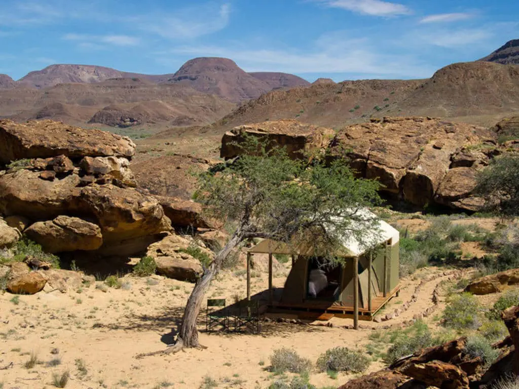 Kulala Adventurer Camp is situated in a private Sossusvlei concession. This intimate camp offers dome tents on wooden platforms with shade flies and en-suite facilities. Separate toilet and shower ‘bathrooms’ with old-style tin bucket showers and basins and amenities create simple serviced comfort.