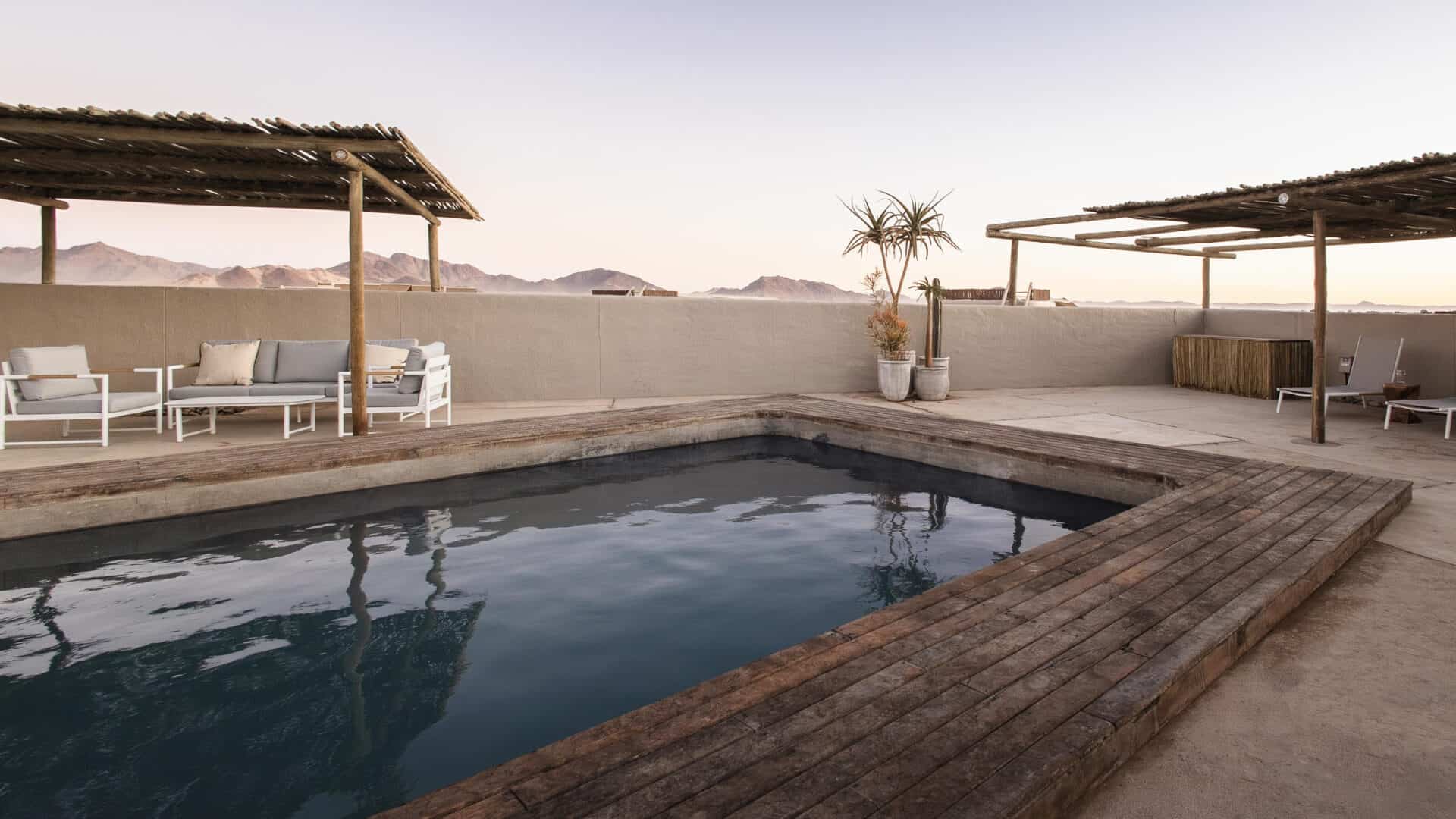 Afternoons around the pool provide relief from the heat, while the wraparound veranda at the main area overlooks a waterhole, and private tours of the dunes provide the ultimate Sossusvlei experience.