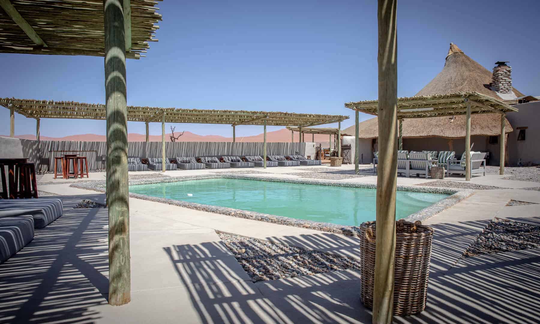 Afternoons around the pool provide relief from the heat, while the wraparound veranda at the main area overlooks a waterhole, and private tours of the dunes provide the ultimate Sossusvlei experience.