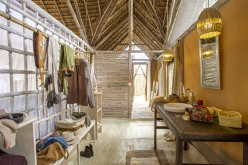 You will gather to share meals and relax under the cool grass thatch of the open-sided lounge and dining area which is furnished with hides and canvas, brought to life with a touch of colourful and tactile textiles, all inspired by the Maasai.