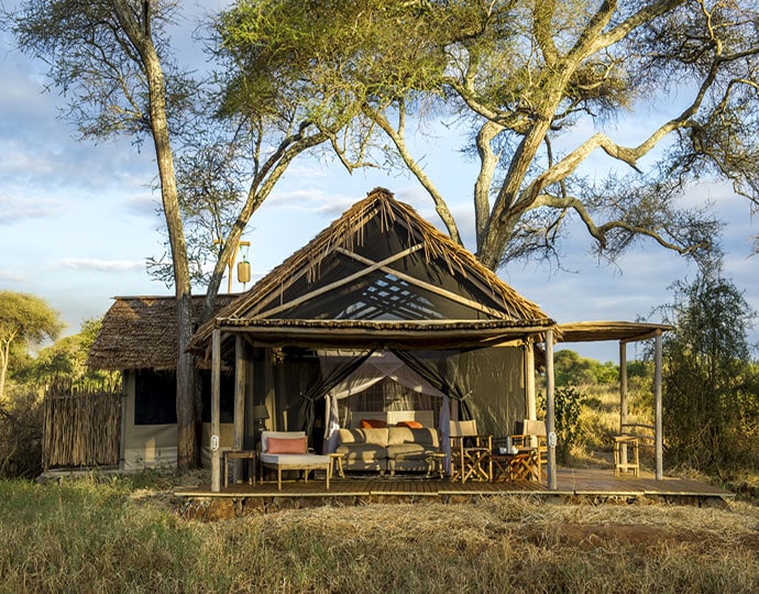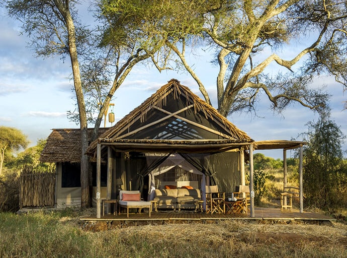 Kuro Tarangire is set amid a grove of Acacia and Kigelia trees close to the Tarangire River – often a dry, sandy course snaking through this quiet area of the park. The area sees the rhythmic movement of wildlife as it traverses the park from the hills in the west to the swamps on the eastern side.