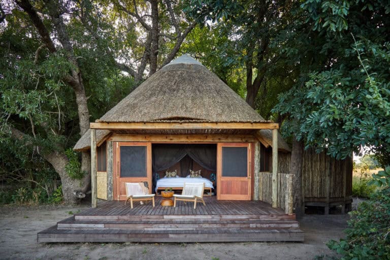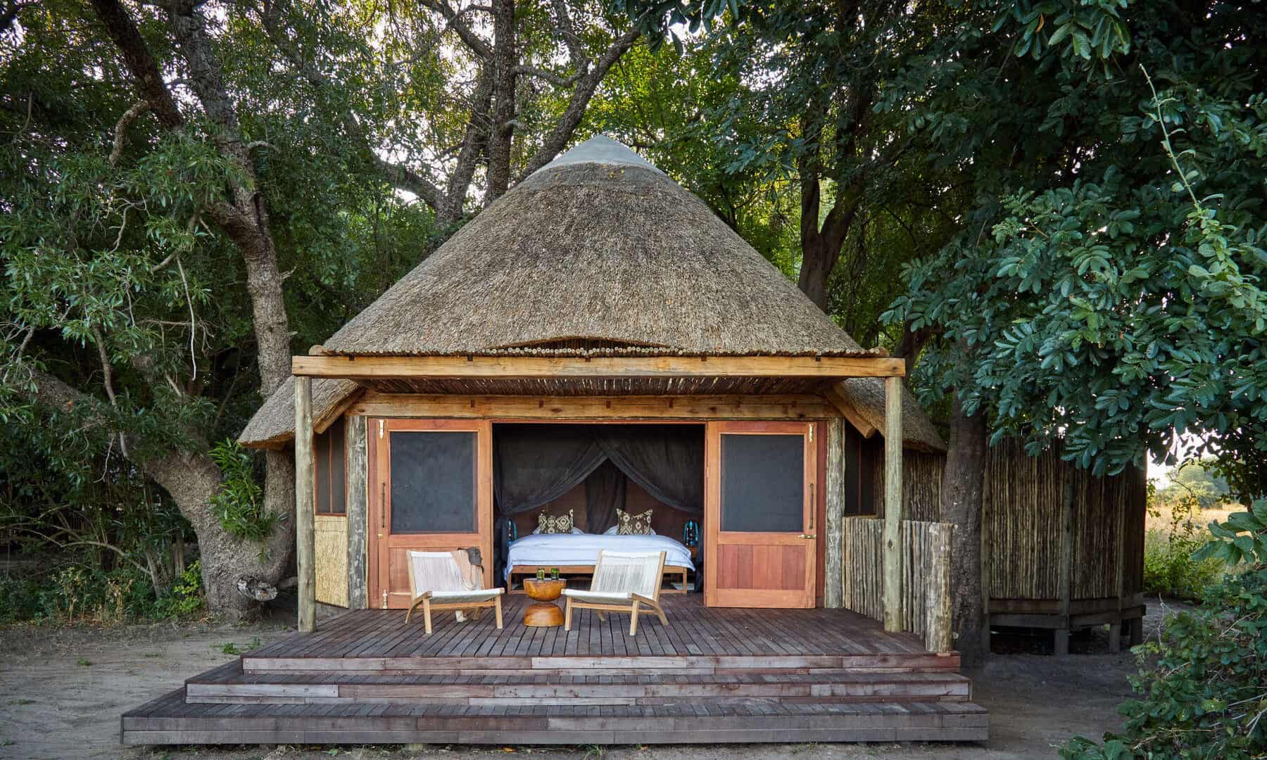 Forget infinity pools and wi-fi: Kuyenda’s simple and spacious rondavels (circular huts) open onto a spacious deck for the ultimate in bush views and come complete with open-air en suite bathroom.