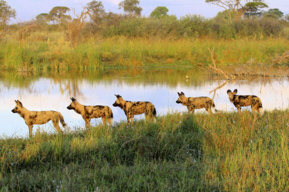 This vast concentration of game attracts the attention of large predators, including the Lagoon wild dog pack who regularly den close to the camp.