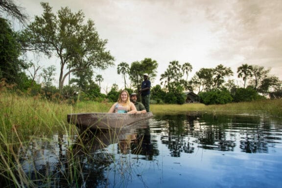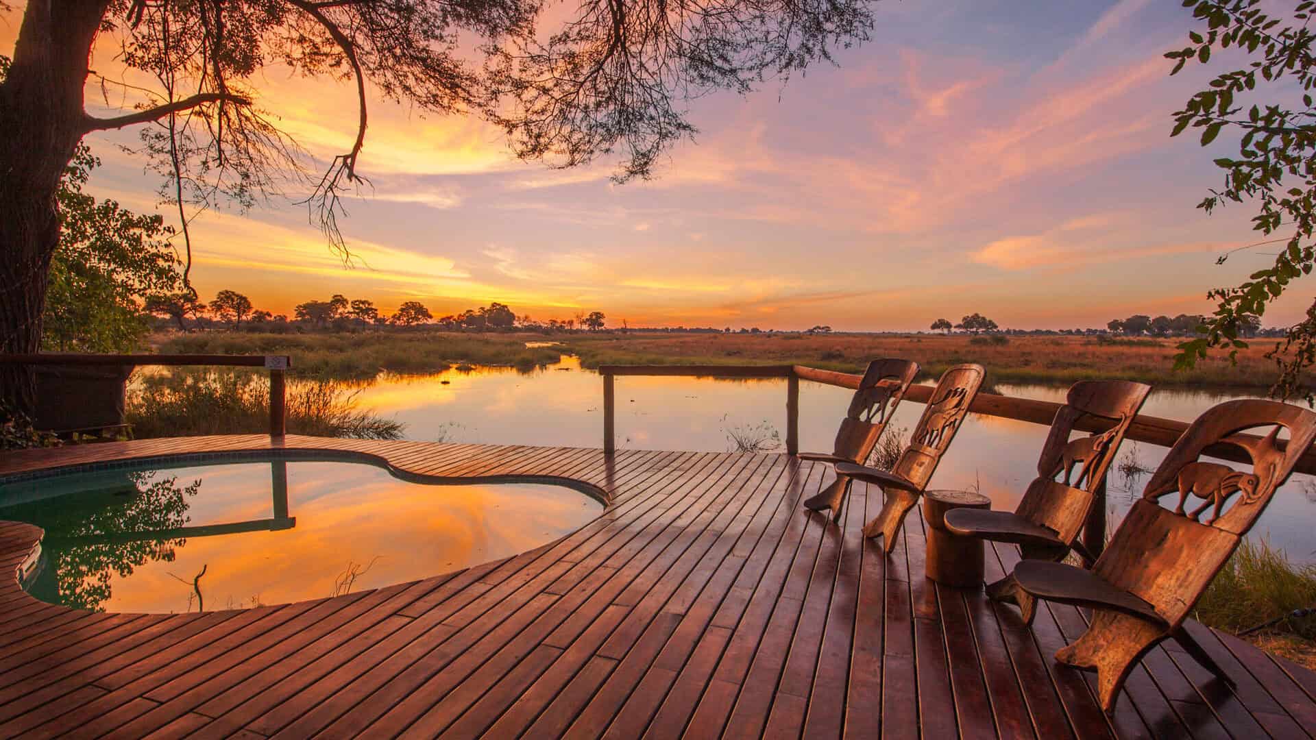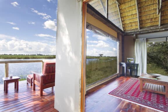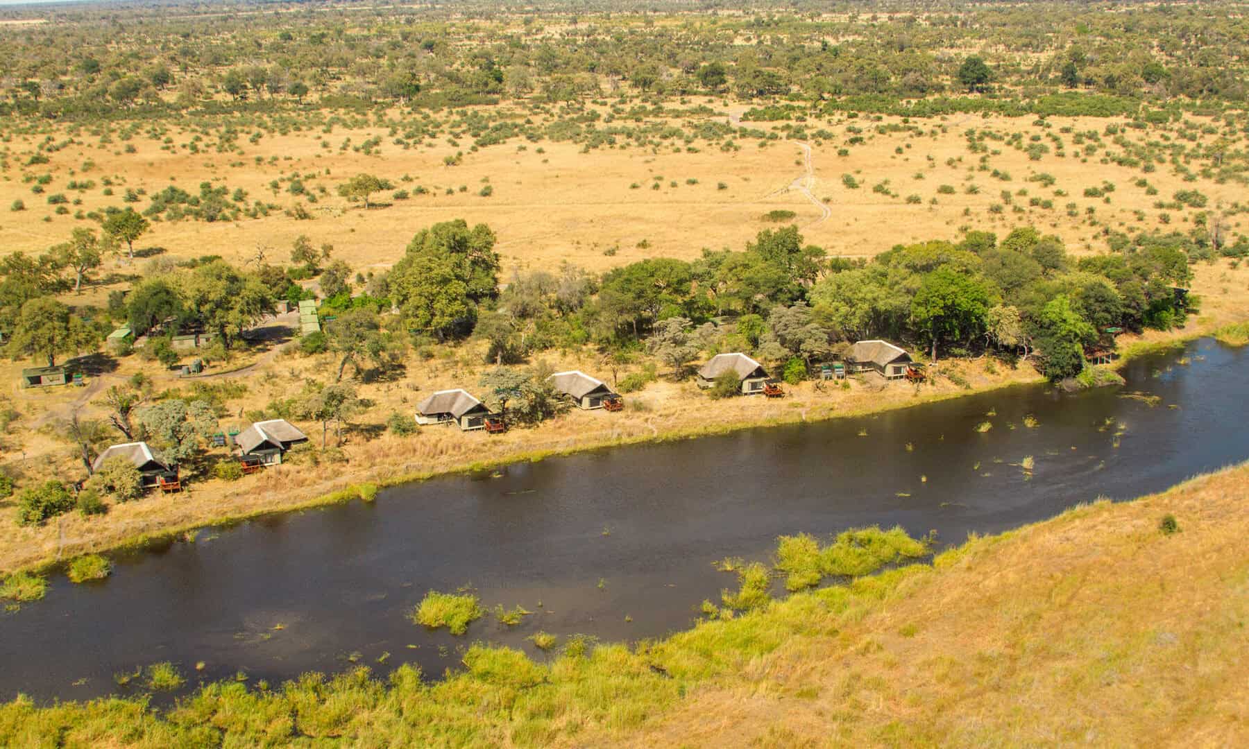 Lagoon camp lies on the shady banks of the Kwando River, nestled beneath towering ebony and marula trees.