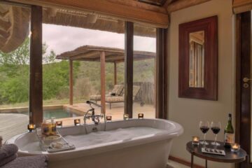 Set along the lush green banks of the river after which it is named, this luxurious lodge has nine suites with private bathrooms, indoor & outdoor showers, personal in-room bar, private veranda and plunge pool and a large viewing deck at the main lodge.