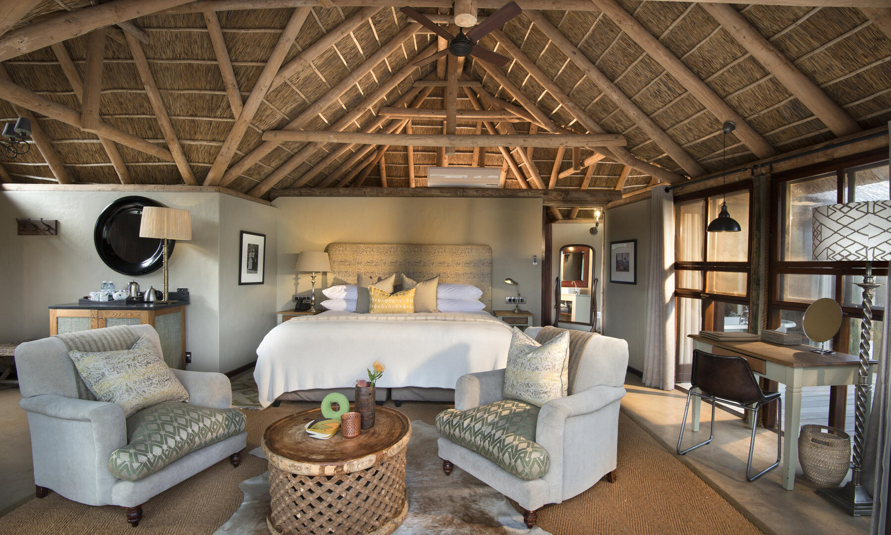 After days spent on safari, unwind in the supreme comfort of your king-sized bed and cocoon in fresh linens with a star-filled view.