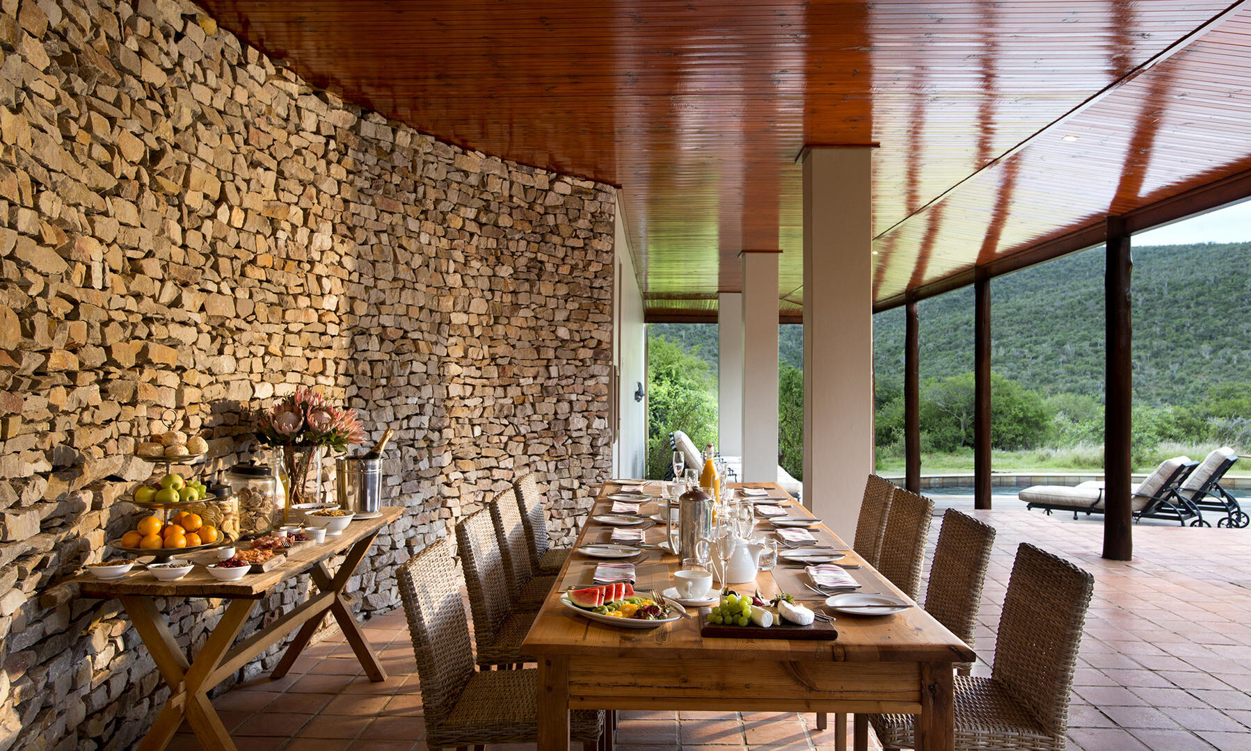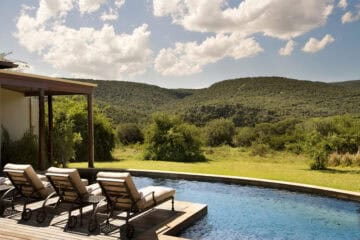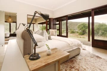 Distinctively South Africa, look out to the bush landscape which has inspired the design from the comfort of deep sofas and antique furniture. Soak up nature’s goodness with the indoor-outdoor living of this sole-use bush paradise.