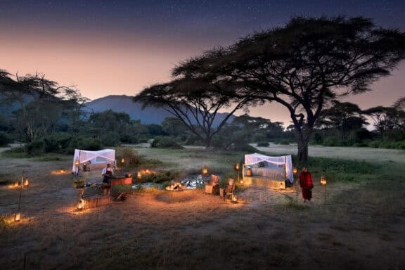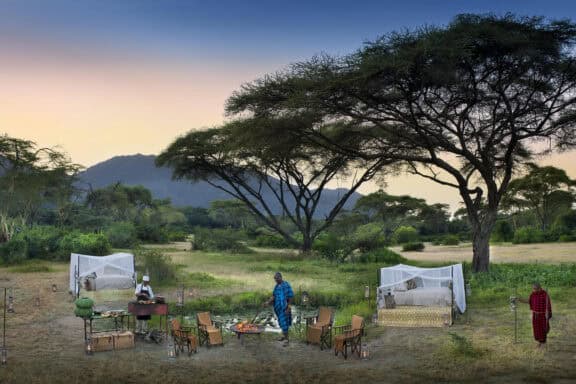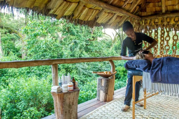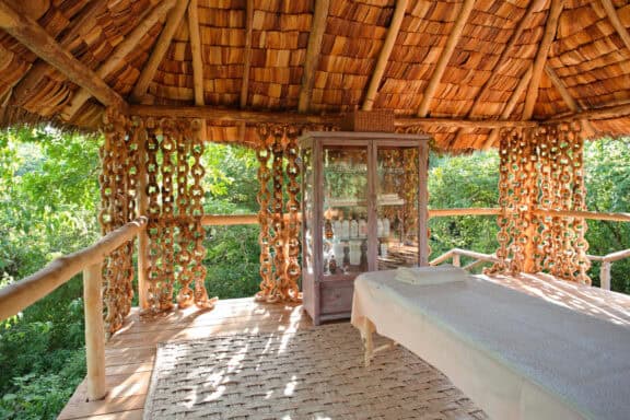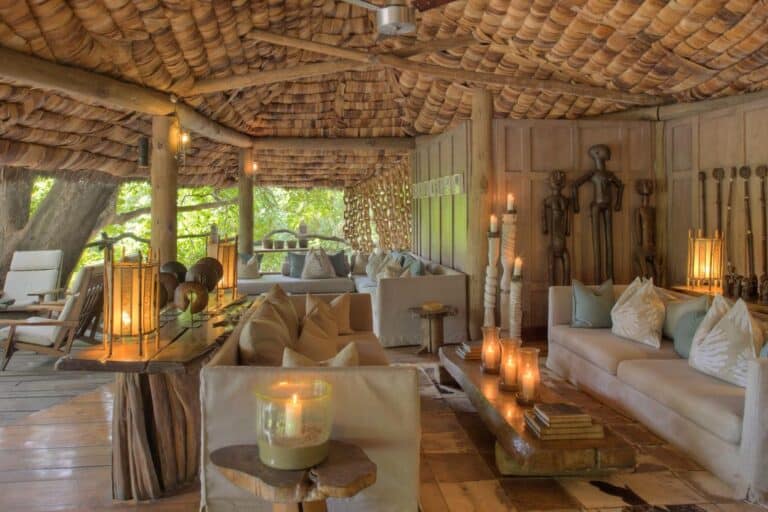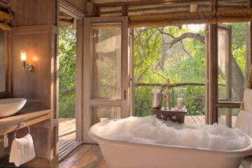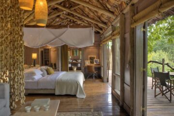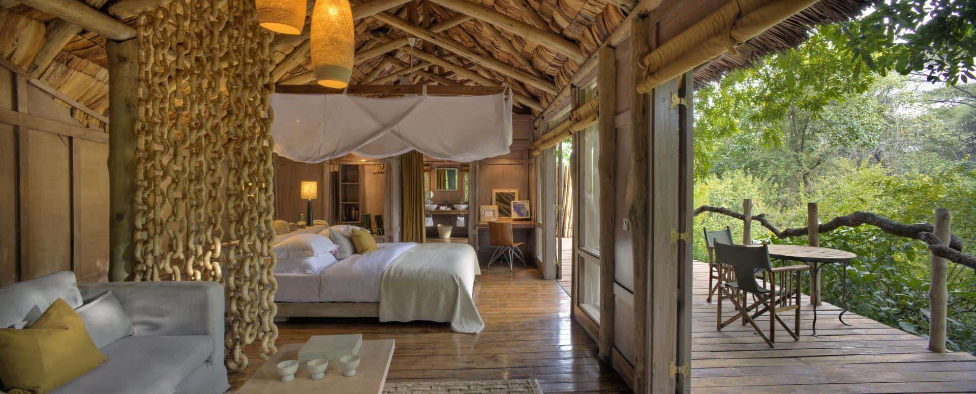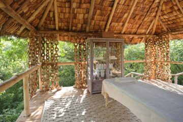 Set in a mahogany forest, andBeyond Lake Manyara Tree Lodge is the only permanent lodge in the Tanzania’s Lake Manyara National Park. Ten stilted treehouse suites, crafted from local timber and makuti palm fronds, offer privacy and exclusivity in cool, leafy surroundings. Each treehouse suite features generous decks suspended above the forest floor and large windows invite the lush forest inside. While the bedrooms are fitted with contemporary furnishing and billowing mosquito nets, the bathrooms feature freestanding baths and an outdoor shower. A central interactive kitchen allows guests to observe the preparation of delicious dishes that are enjoyed in the theatrical boma or on the open dining decks, with spectacular forest views.