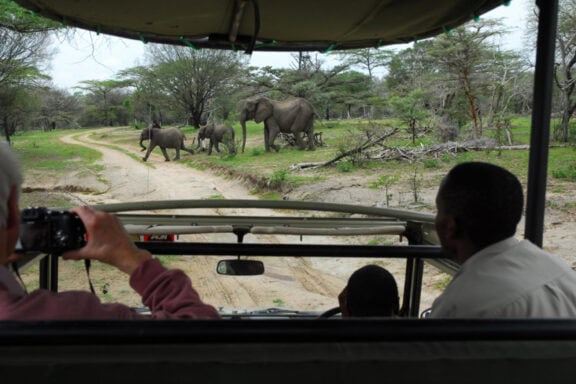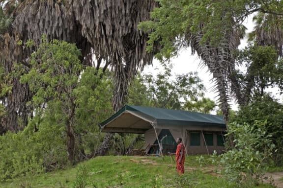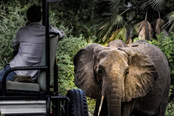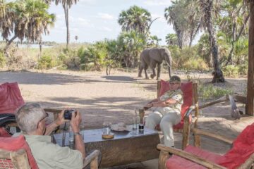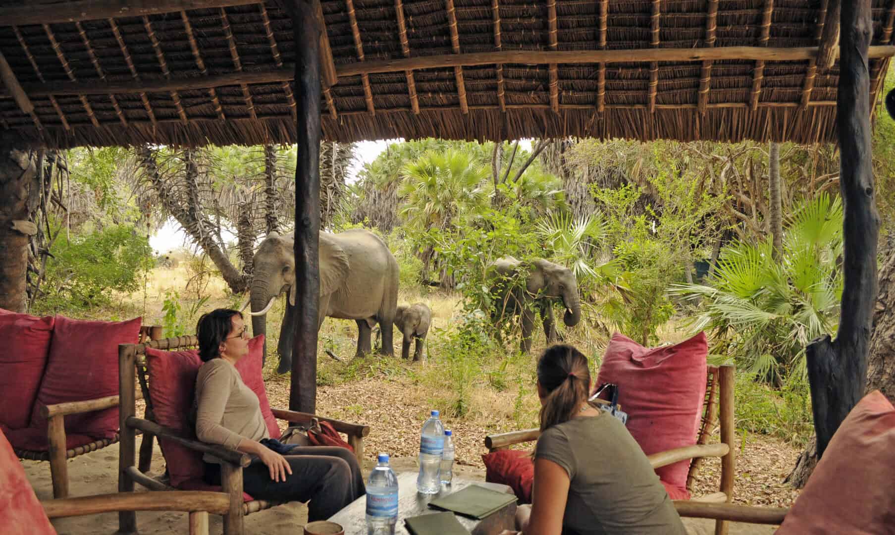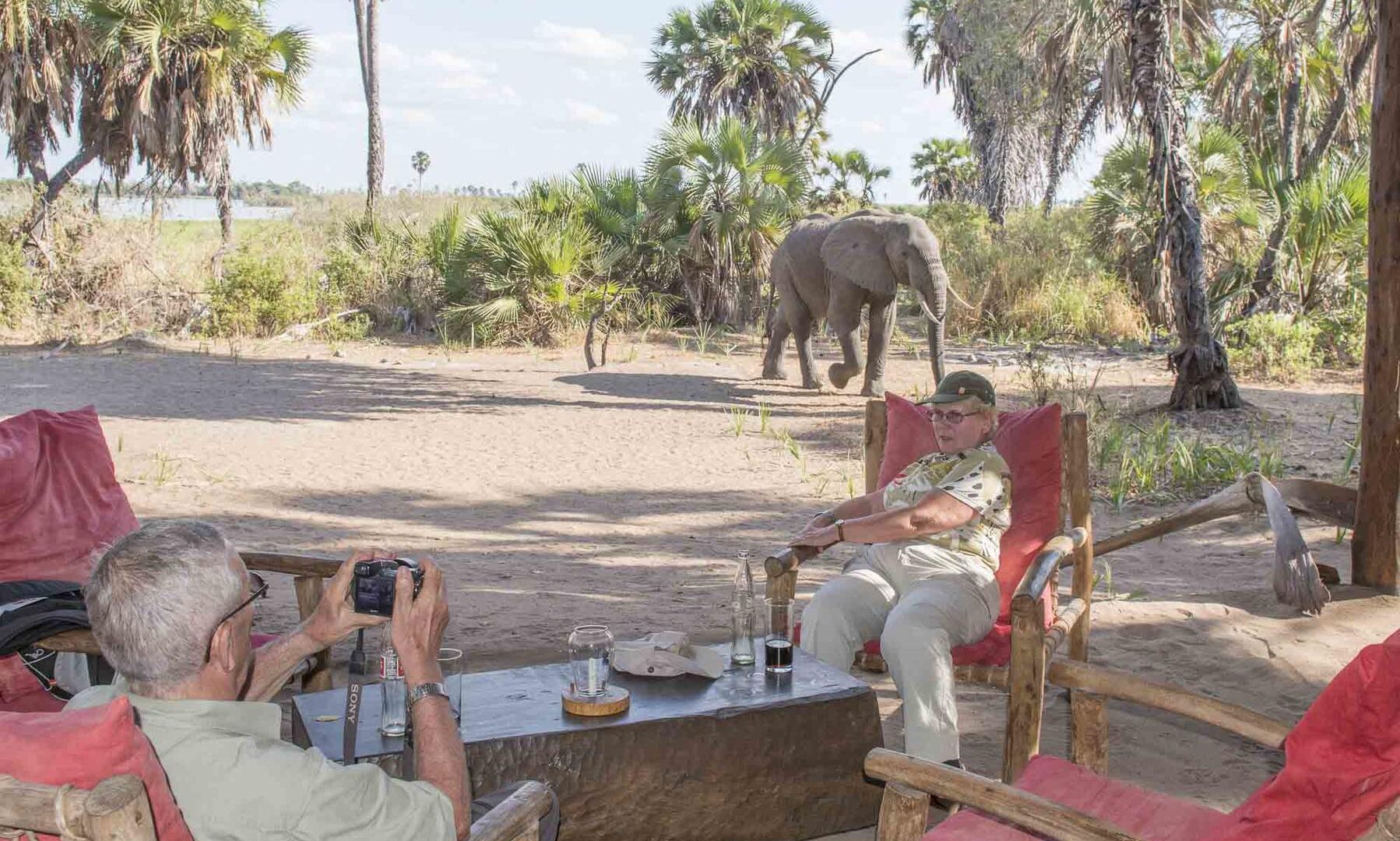 Feel the thrills of having an elephant eating Doum palm seeds right outside your tent. Hear the sound of its rumbling stomach and see how tender a mother is to her calf.