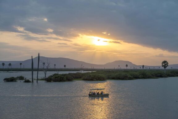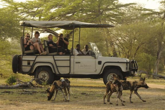Experience this magical, romantic camp on the shore of the Lake Manze with stunning lake views from your own verandah. Experience the sunrise on a walking safari. Enjoy a delicious picnic bush breakfast or lunch during your game drive as you spot lions and wild dogs. Take a fishing trip on the lake. Get close and personal with hippos and crocodiles and thousands of exotic birds on a sunset boat safari. Delight in a sumptuous candlelight dinner on the lakeshore to the symphony of the surrounding.