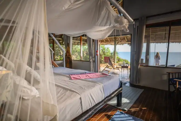 The lodge’s unique access to the Indian Ocean means you can enjoy various activities like kayaking, snorkelling, and boat excursions to a private sandbar. For an enriching cultural experience, day trips to the nearby UNESCO World Heritage Site of Bagamoyo can also be arranged. This beach retreat is perfectly suited for honeymooners, couples, and those seeking a secluded beach holiday in Tanzania.