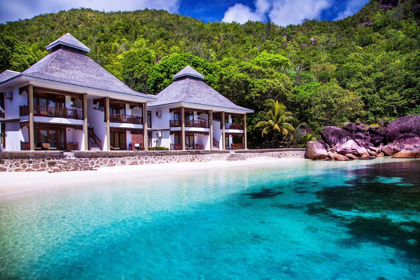 Le Domaine de La Réserve Hotel, Praslin Island Seychelles, has a wonderful setting at the beautiful Anse Petite Cour on the island of Praslin in the Seychelles.